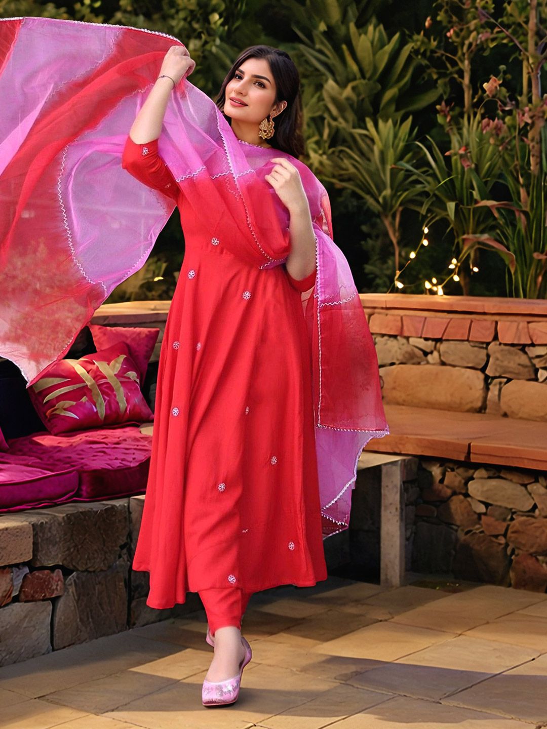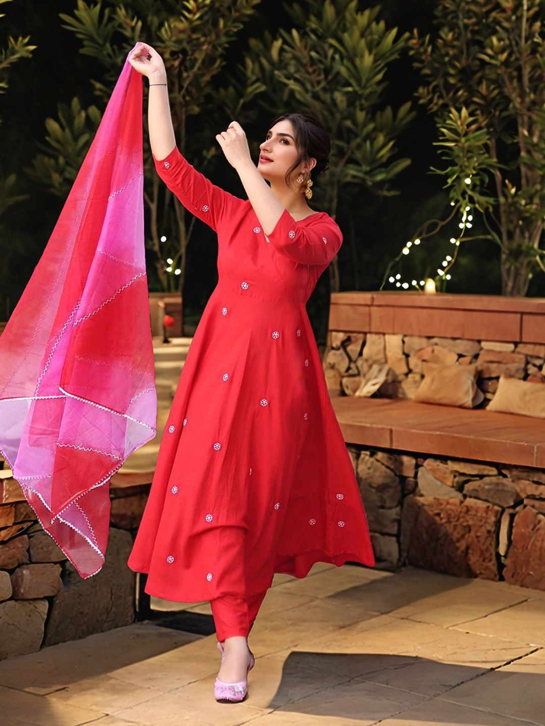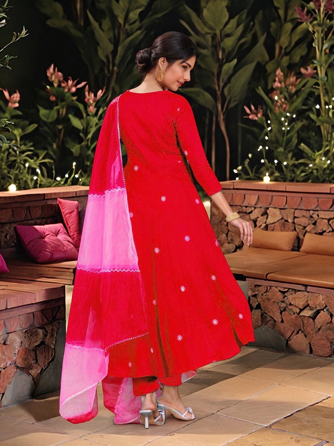 Aaghnya Women Embroidered Regular Kurta with Trousers & With Dupatta