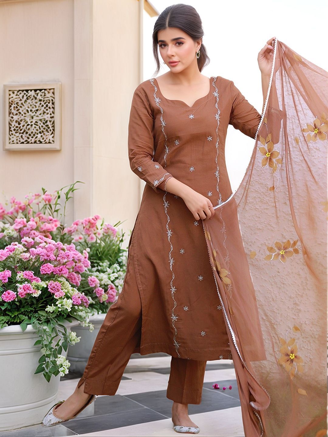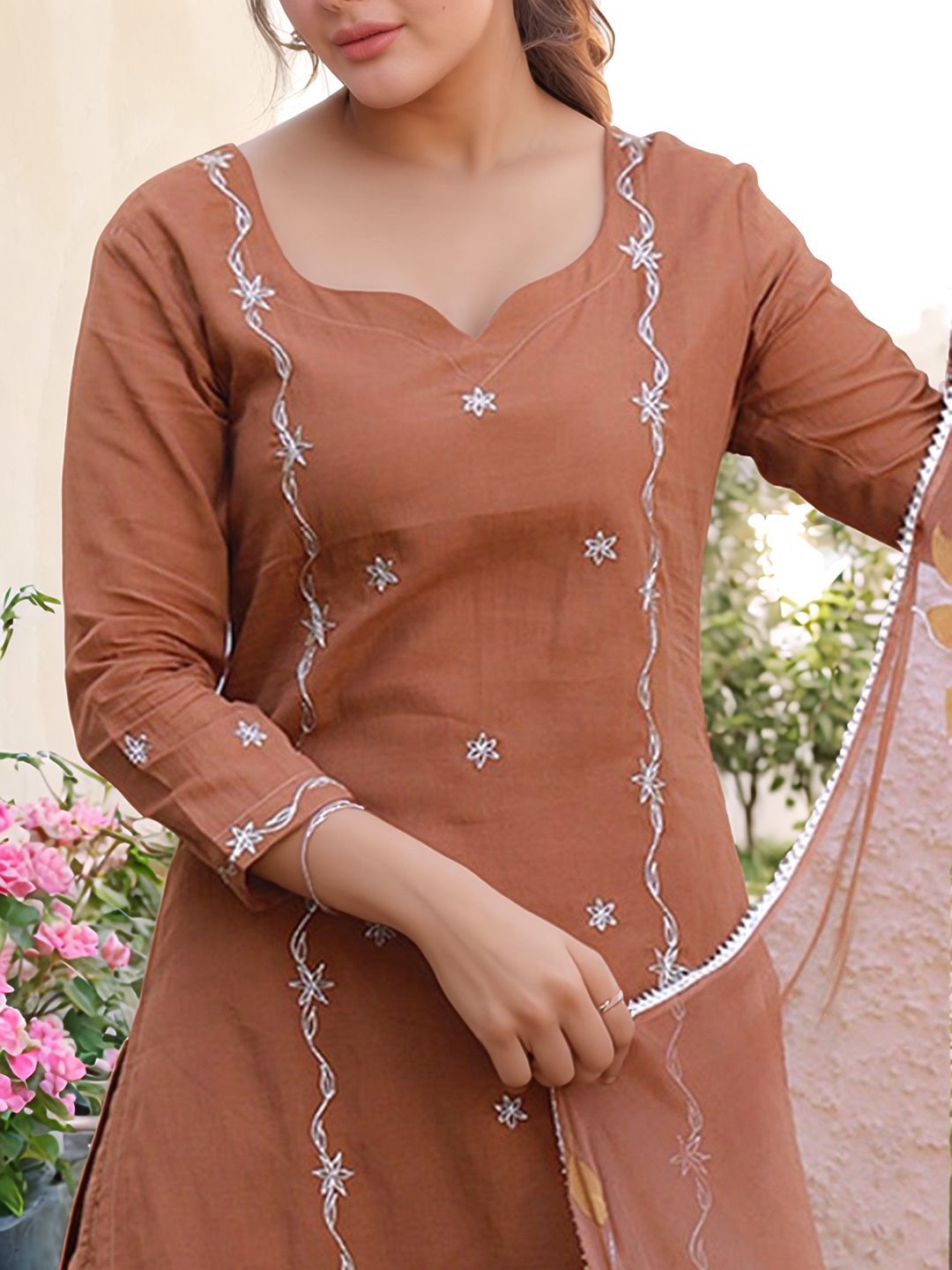 Aaghnya Women Ethnic Embroidered Regular Thread Work Kurta with Trousers & With Dupatta