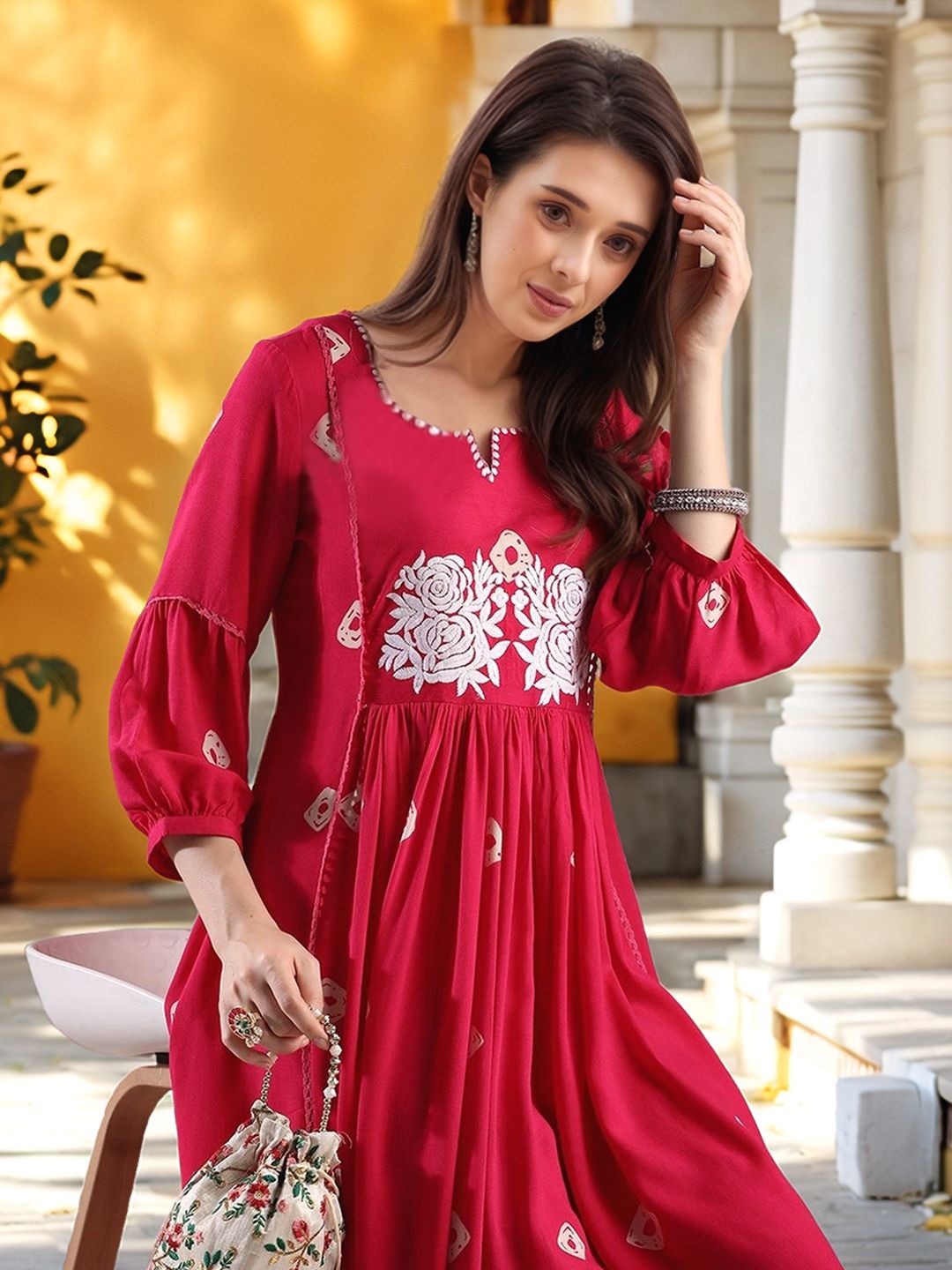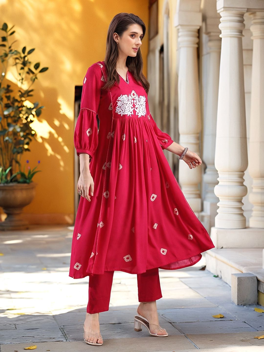 Aaghnya Women Ethnic Motifs Embroidered Regular Kurta with Trousers
