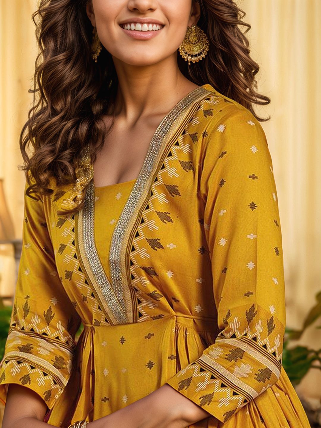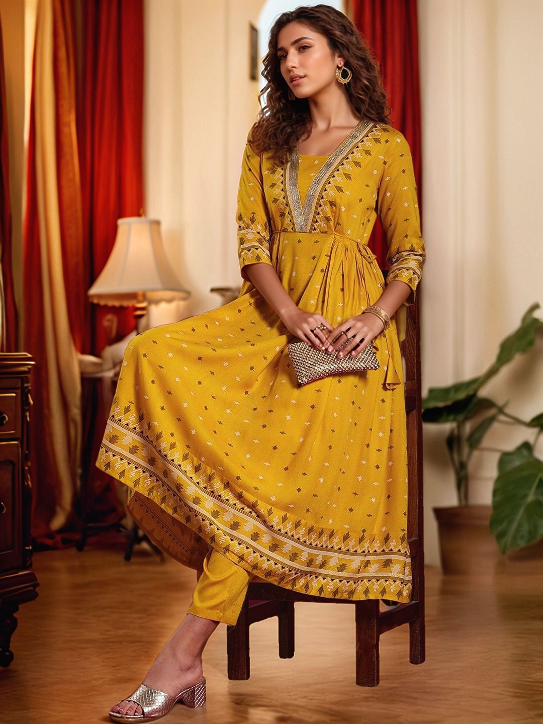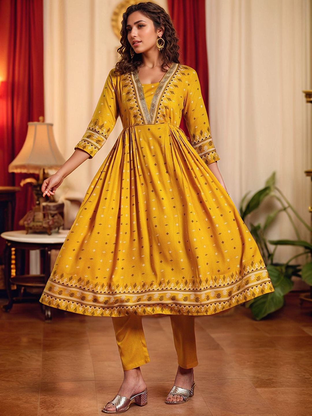 Aaghnya Women Ethnic Motifs Printed Anarkali Kurta with Trousers