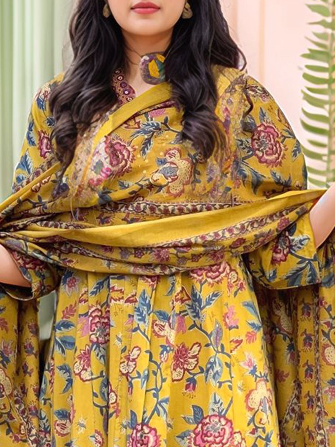 Aaghnya Women Ethnic Motifs Printed Pleated Mirror Work Kurta & Palazzos With Dupatta