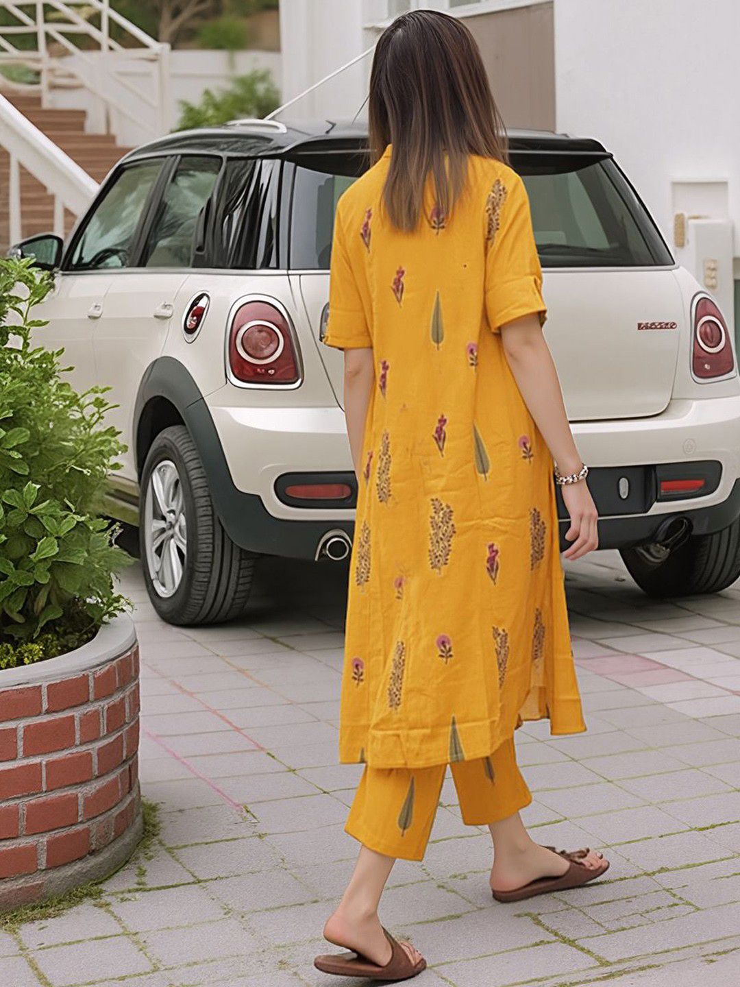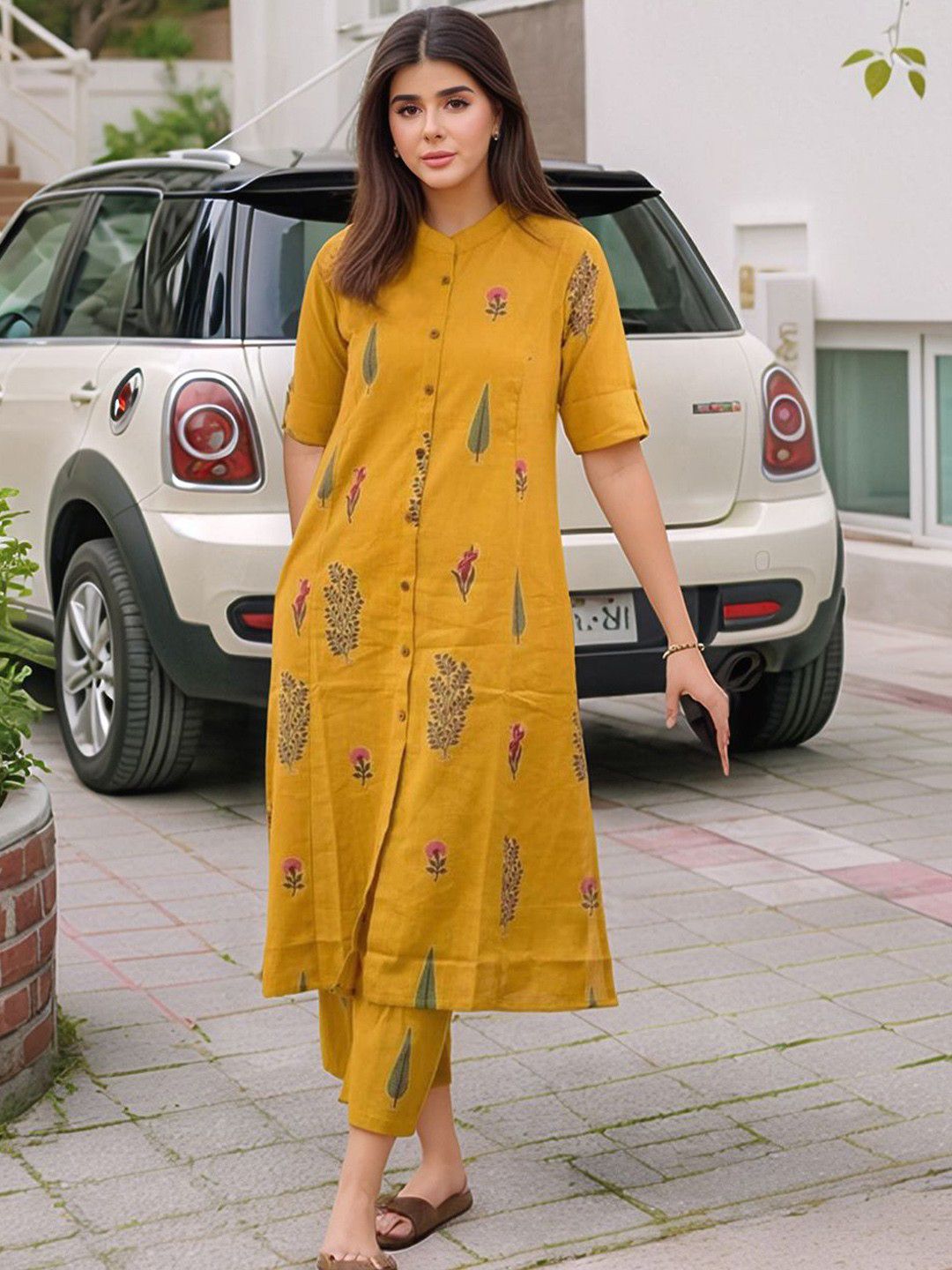 Aaghnya Women Floral Embroidered Regular Kurta with Trousers