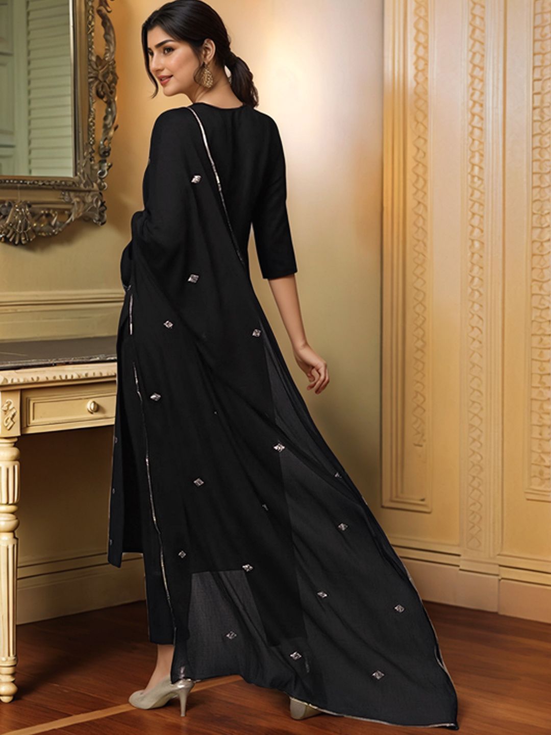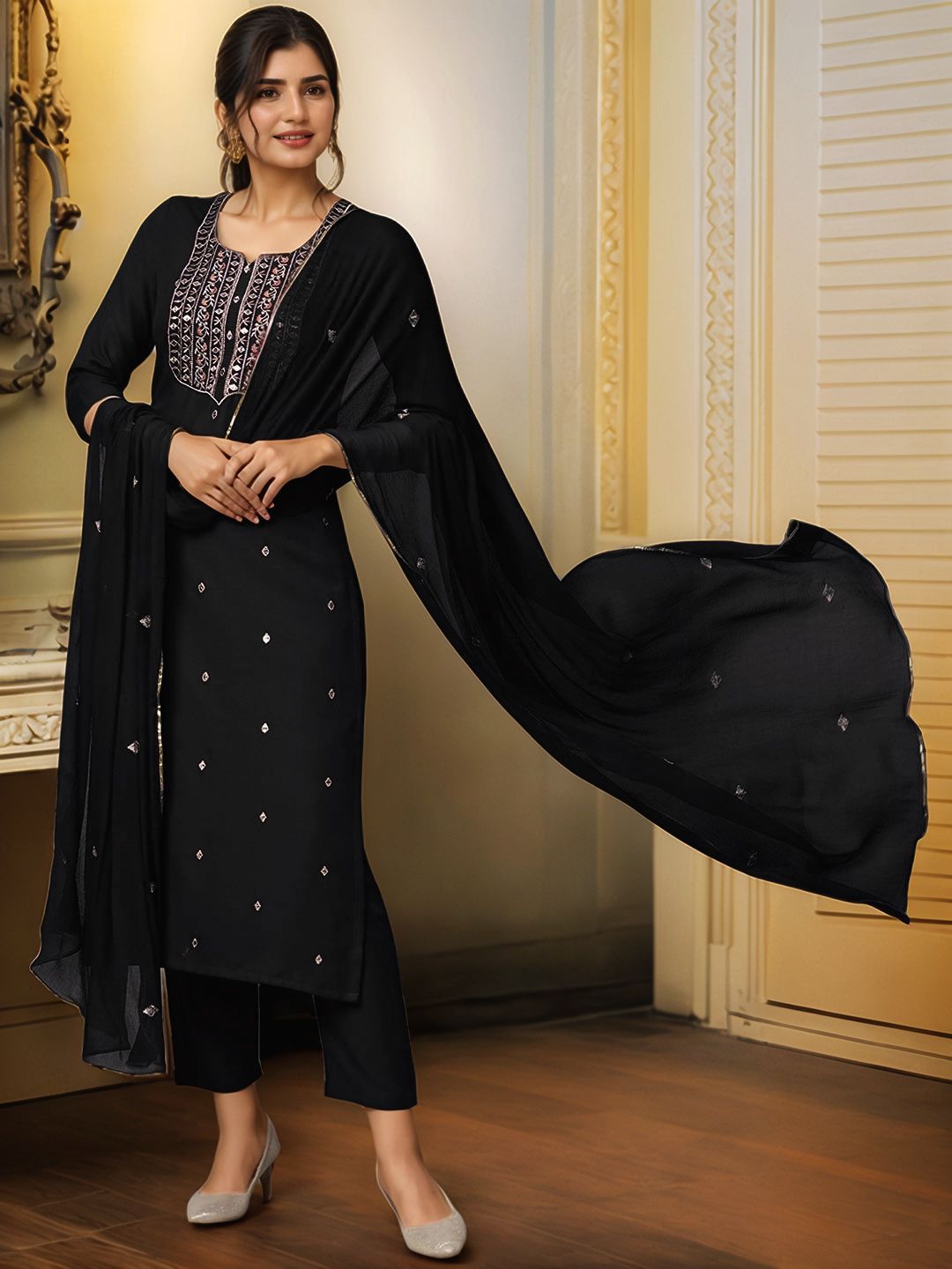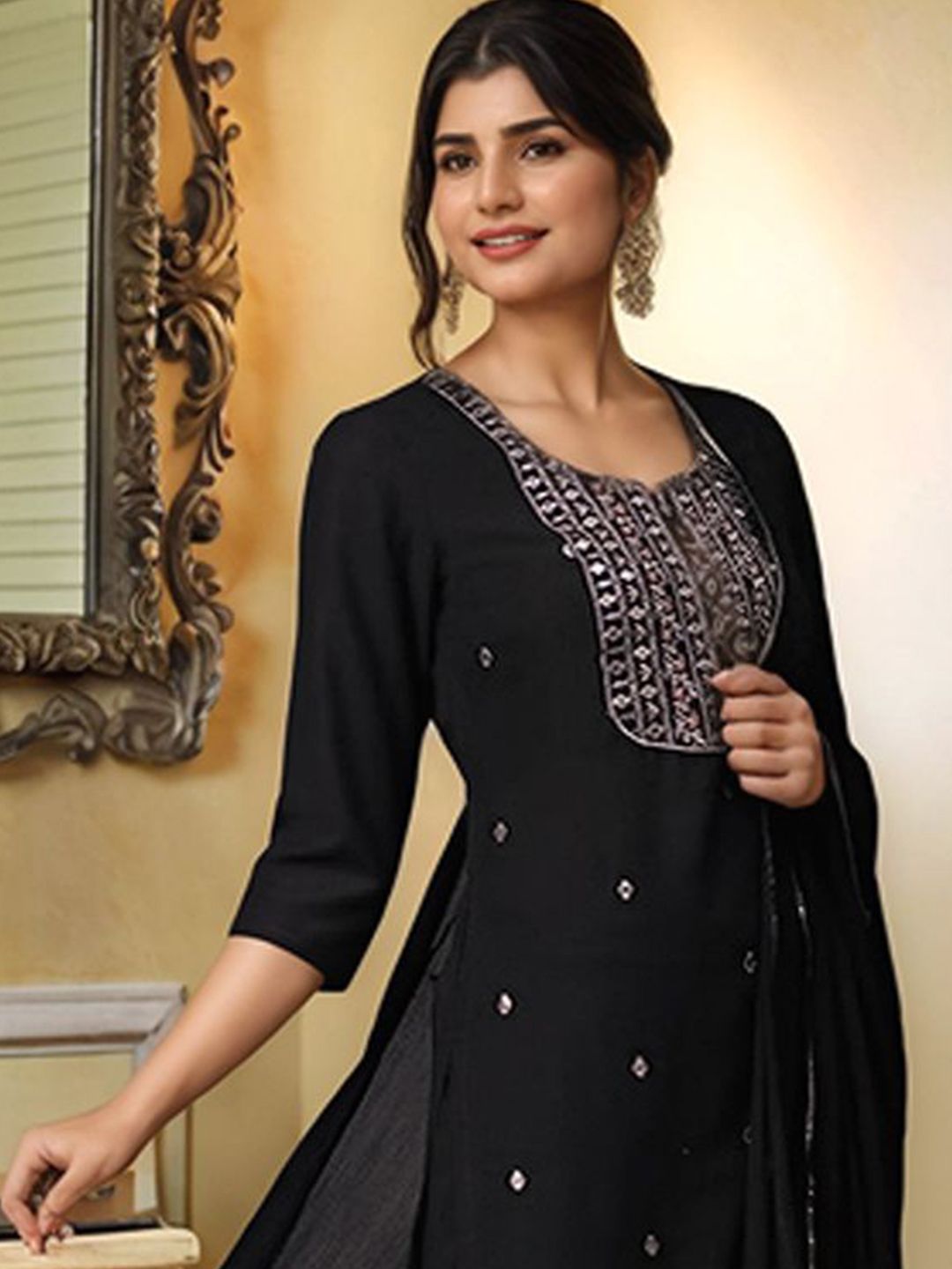 Aaghnya Women Floral Embroidered Regular Thread Work Kurta with Trousers & With Dupatta
