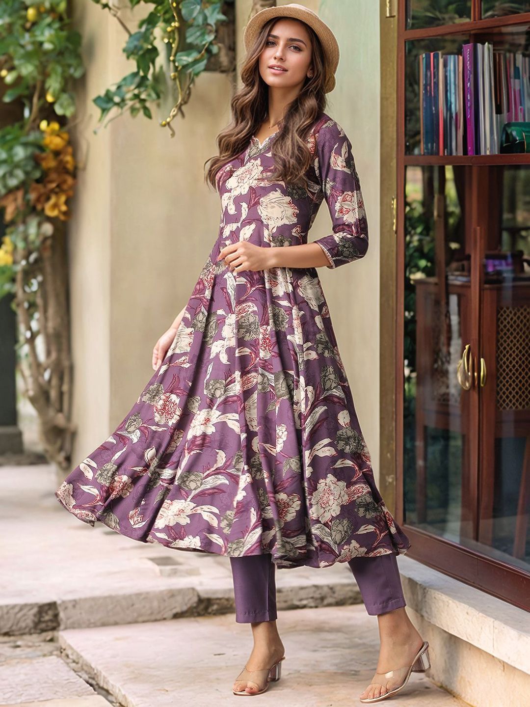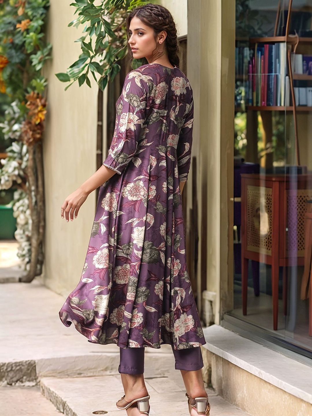 Aaghnya Women Floral Printed Anarkali Kurta with Trousers