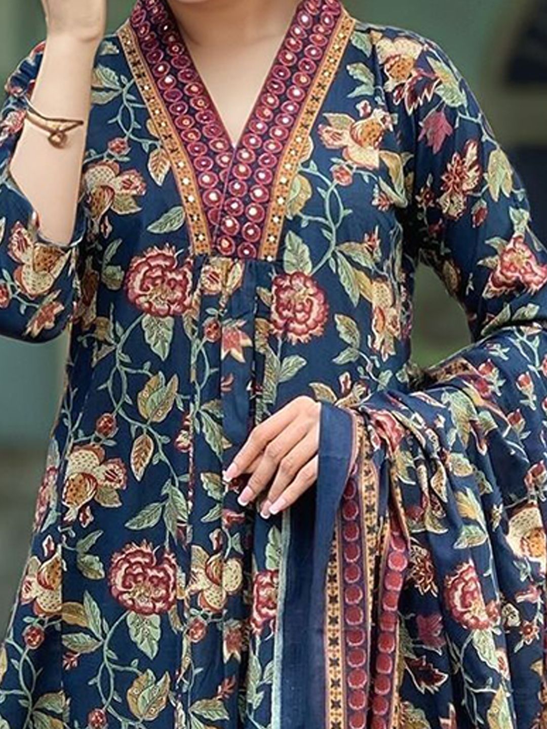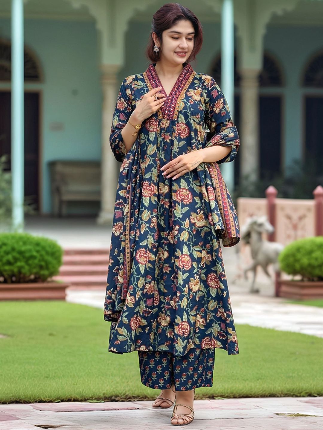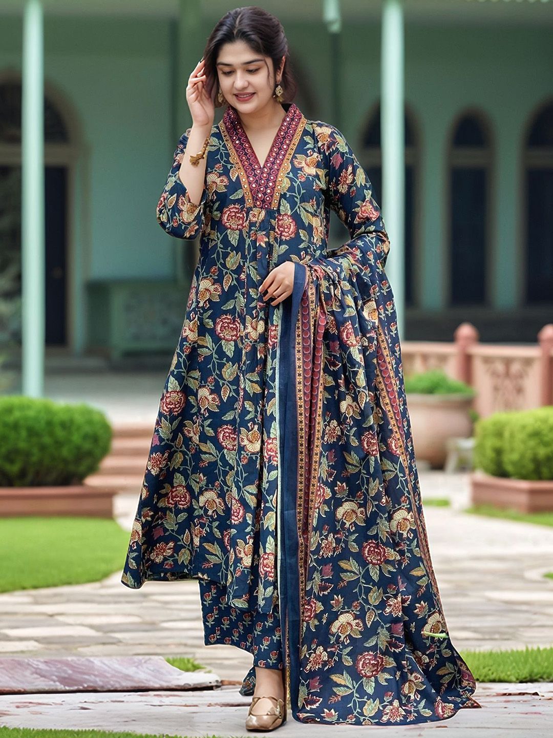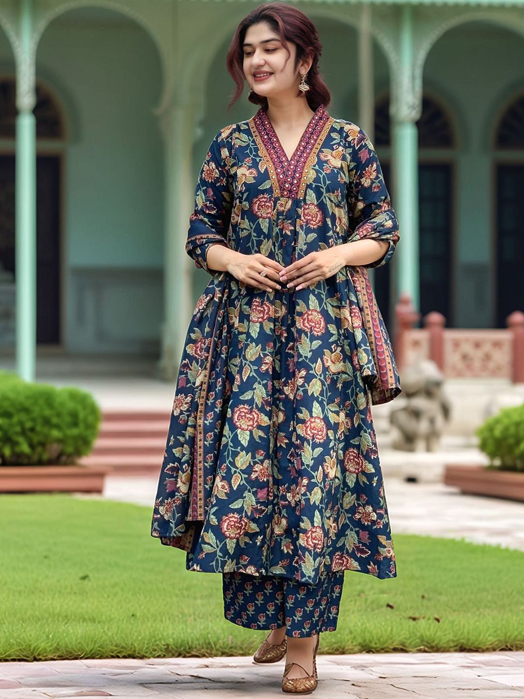 Aaghnya Women Floral Printed Kurta with Palazzos & Dupatta