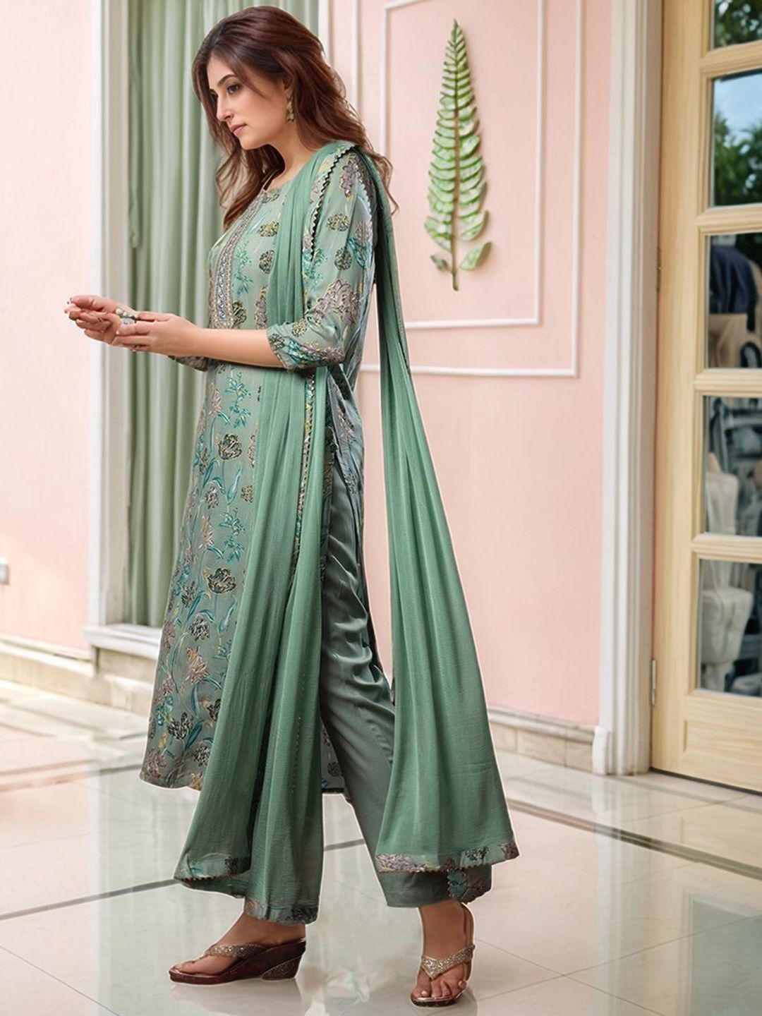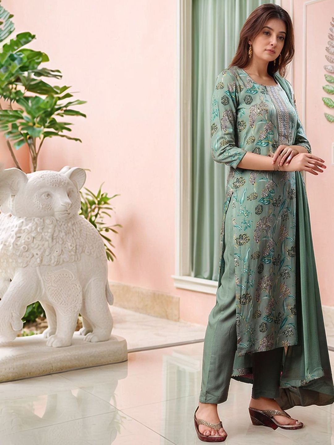 Aaghnya Women Floral Printed Kurta with Trousers & Dupatta