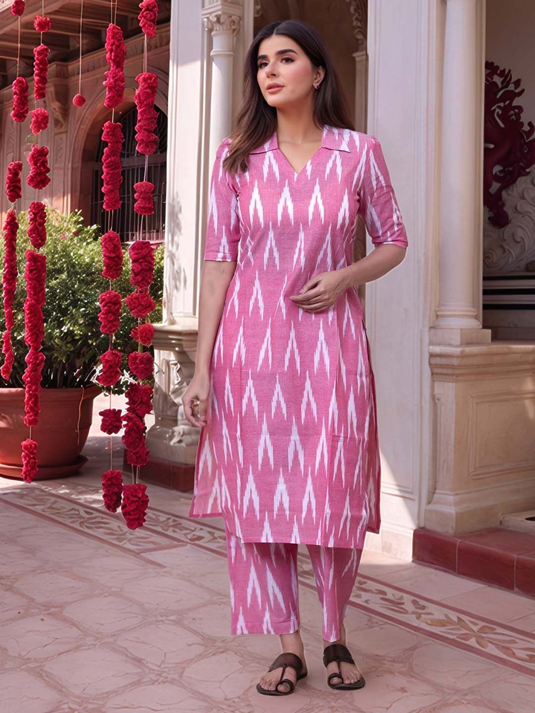 Aaghnya Women Printed Shirt Coller Kurta with Trousers