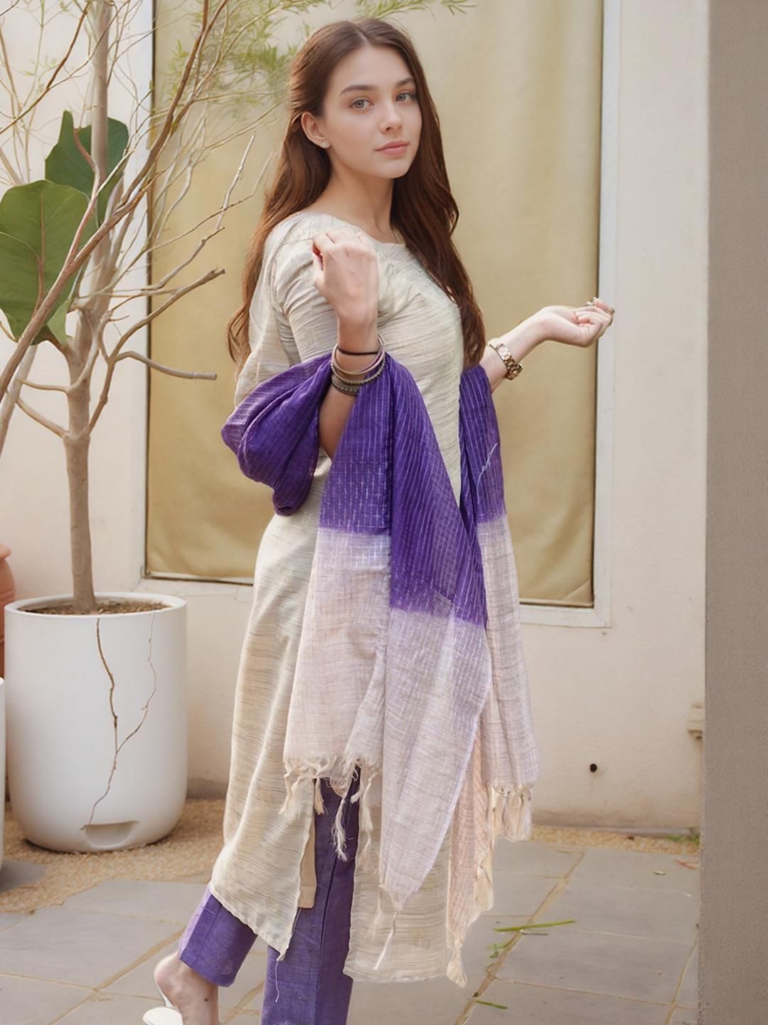 Aaghnya Women Silk Blend Solid Kurta Sets