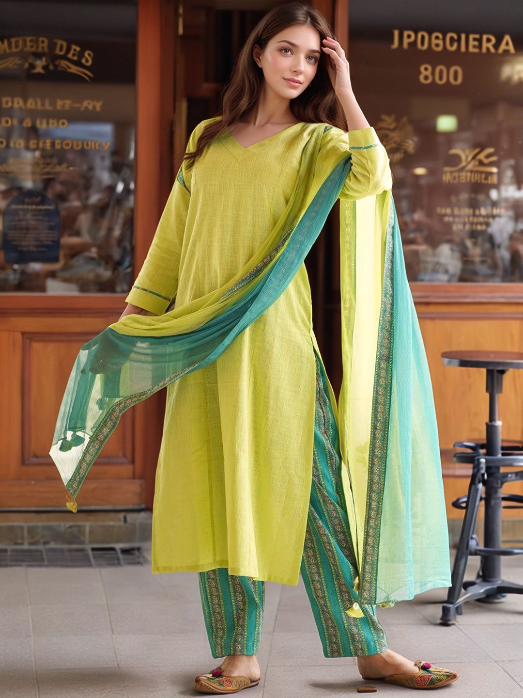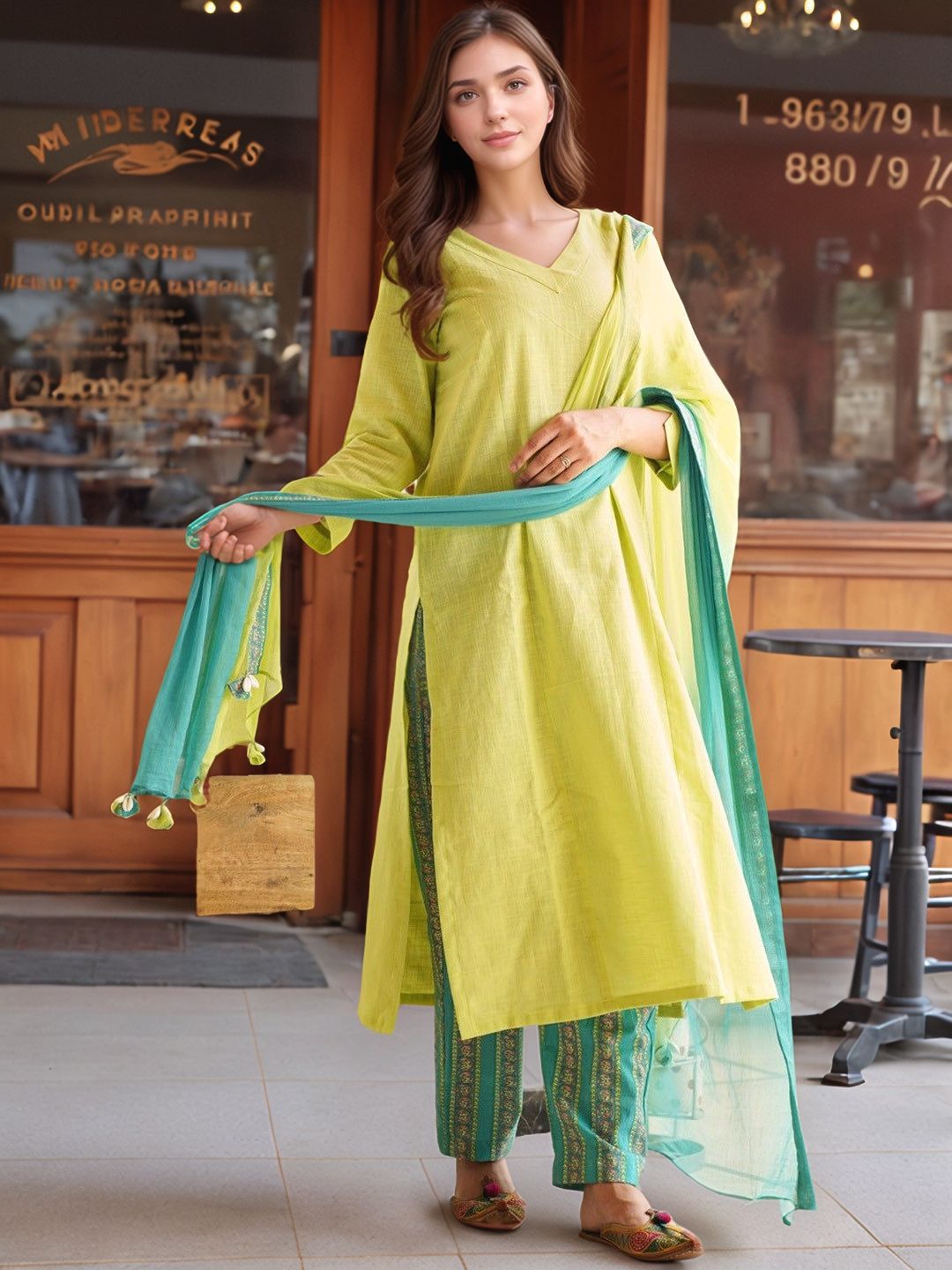 Aaghnya Women Solid Kurta with Trousers & Dupatta