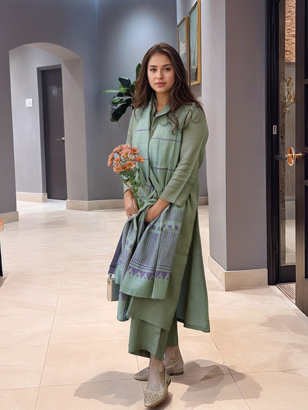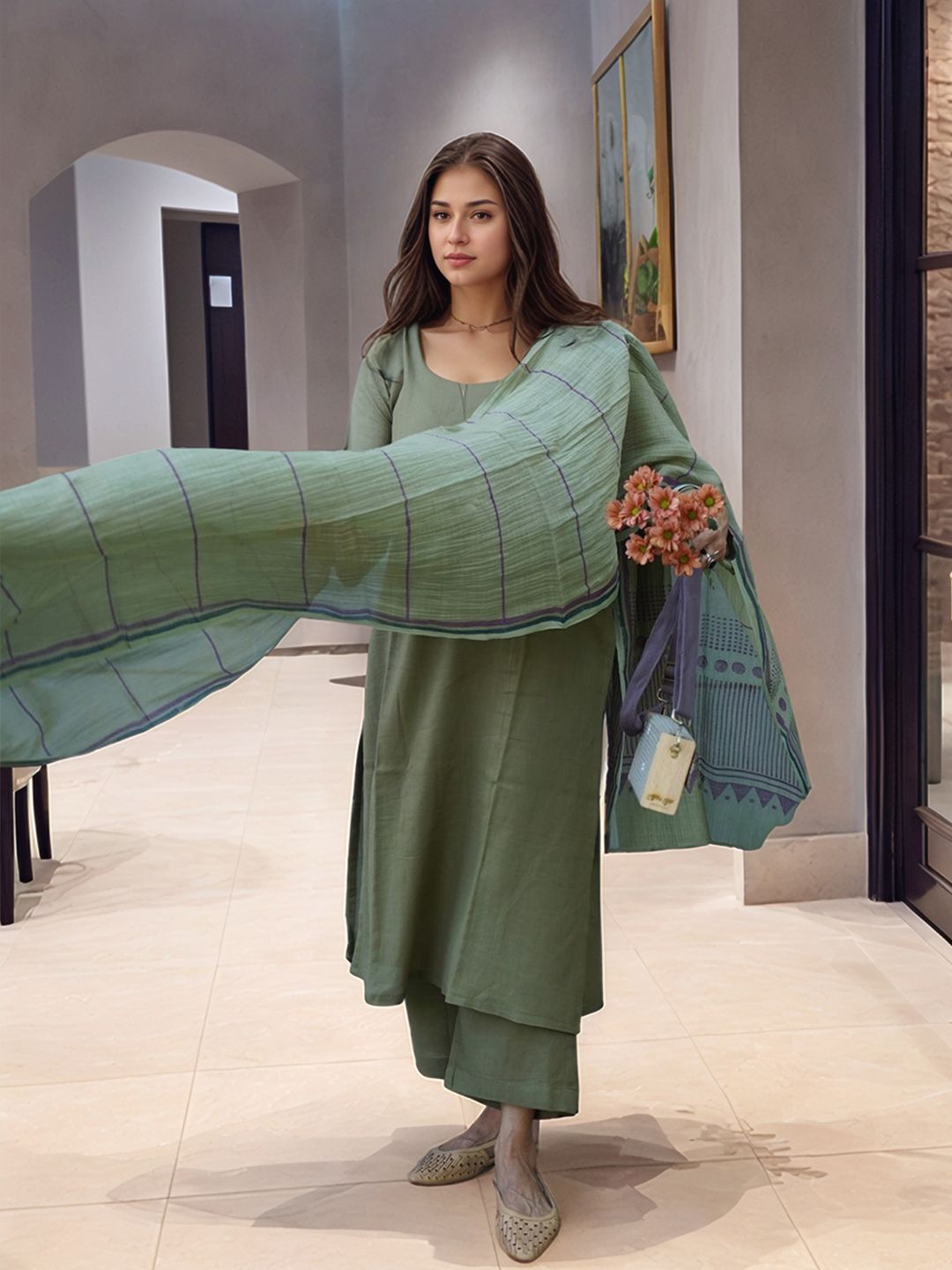 Aaghnya Women Striped Solid Kurta with Palazzo & Dupatta