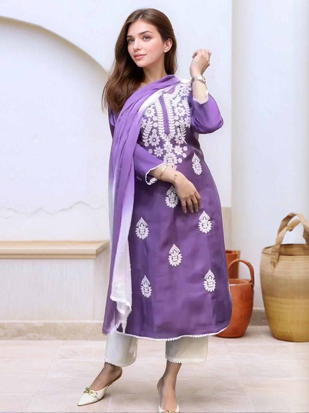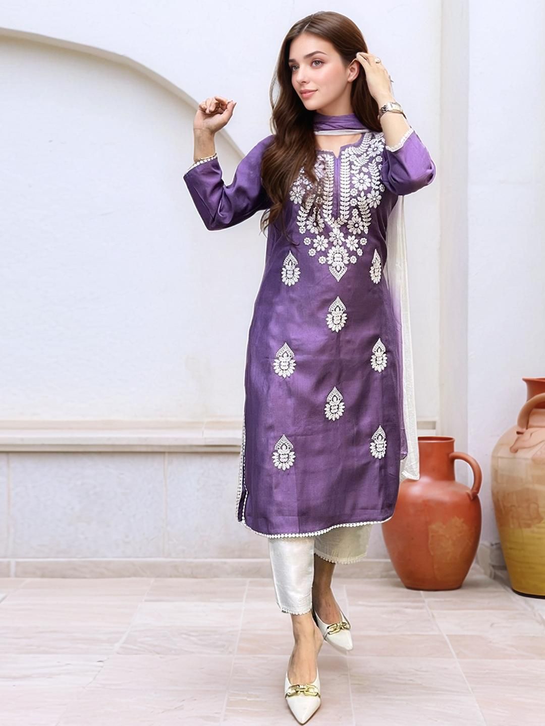Aaghnya Women Viscose Rayon Embroidered Kurta Sets