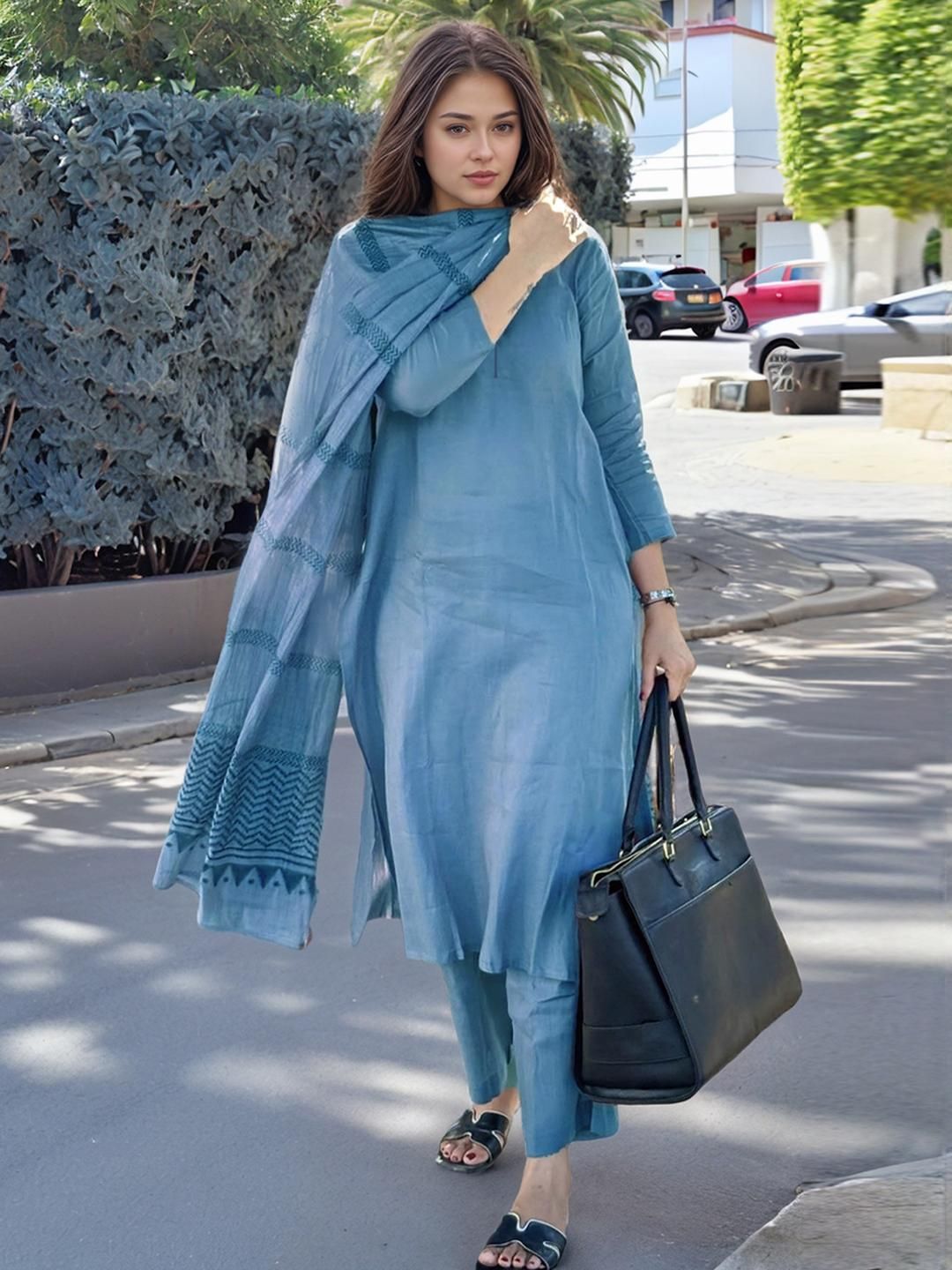 Aaghnya Women Viscose Rayon Solid Kurta Sets