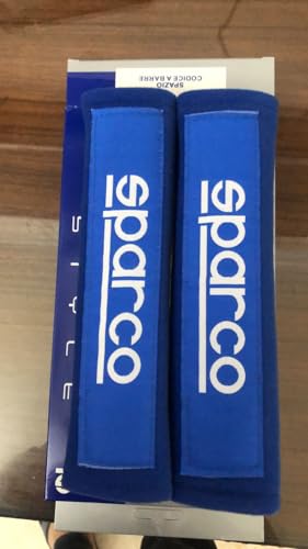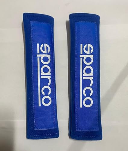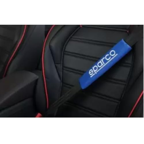 aakichi 2Pcs Blue Sparco Seat Belt Shoulder Pads for Comfort, Embroided Logo Leather Car Seat Belt Pads Safety Belt Cover Universal for All Car
