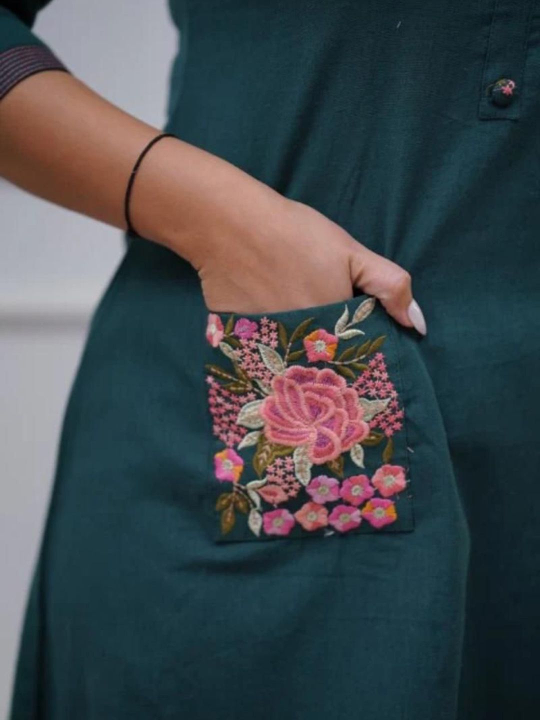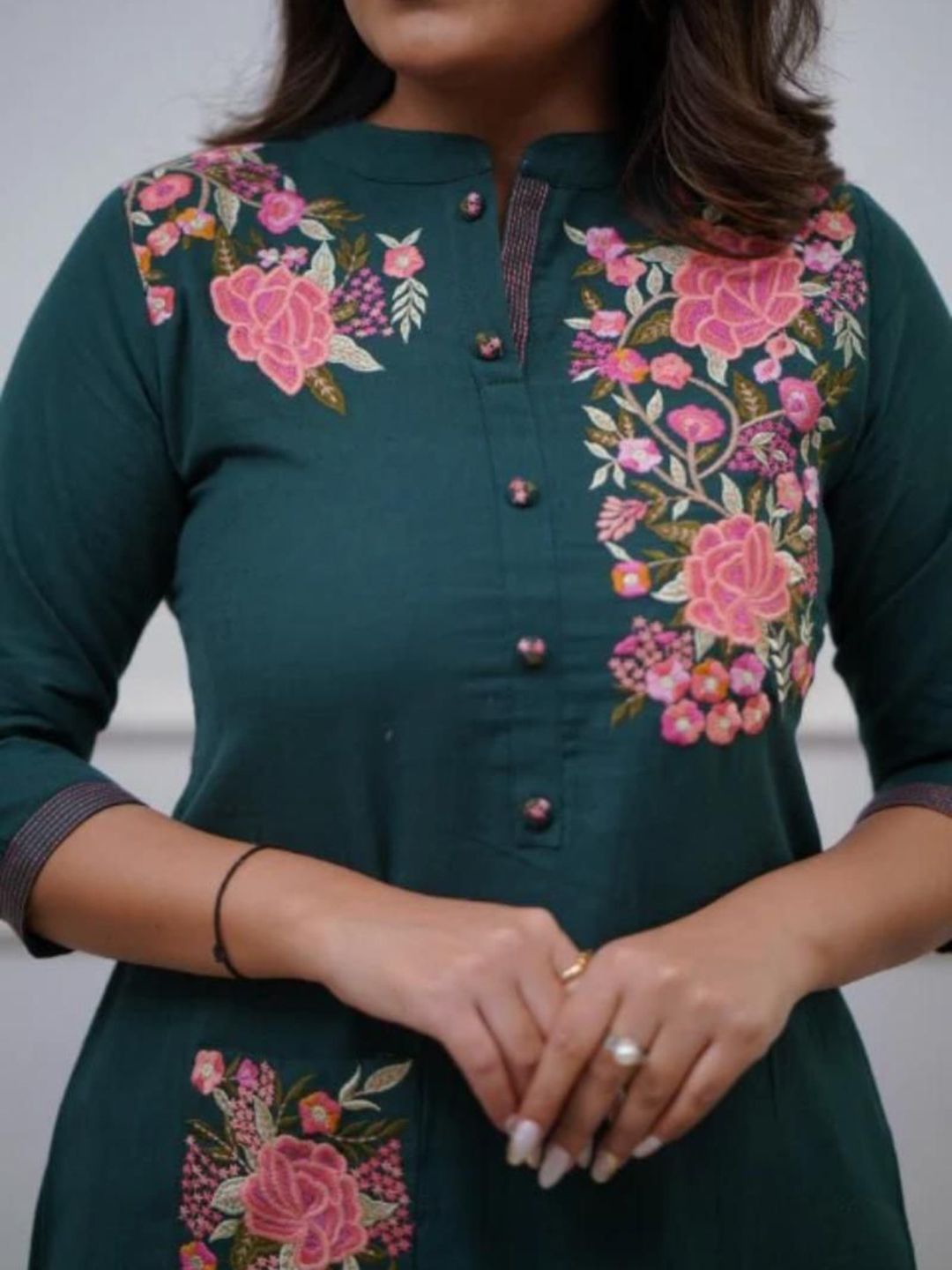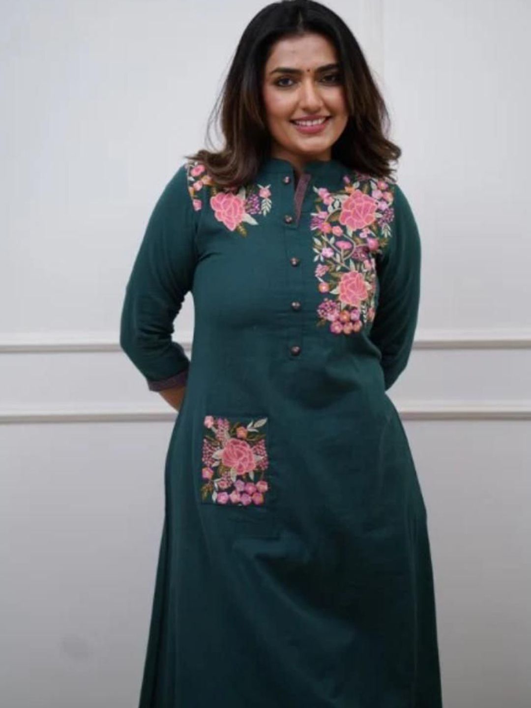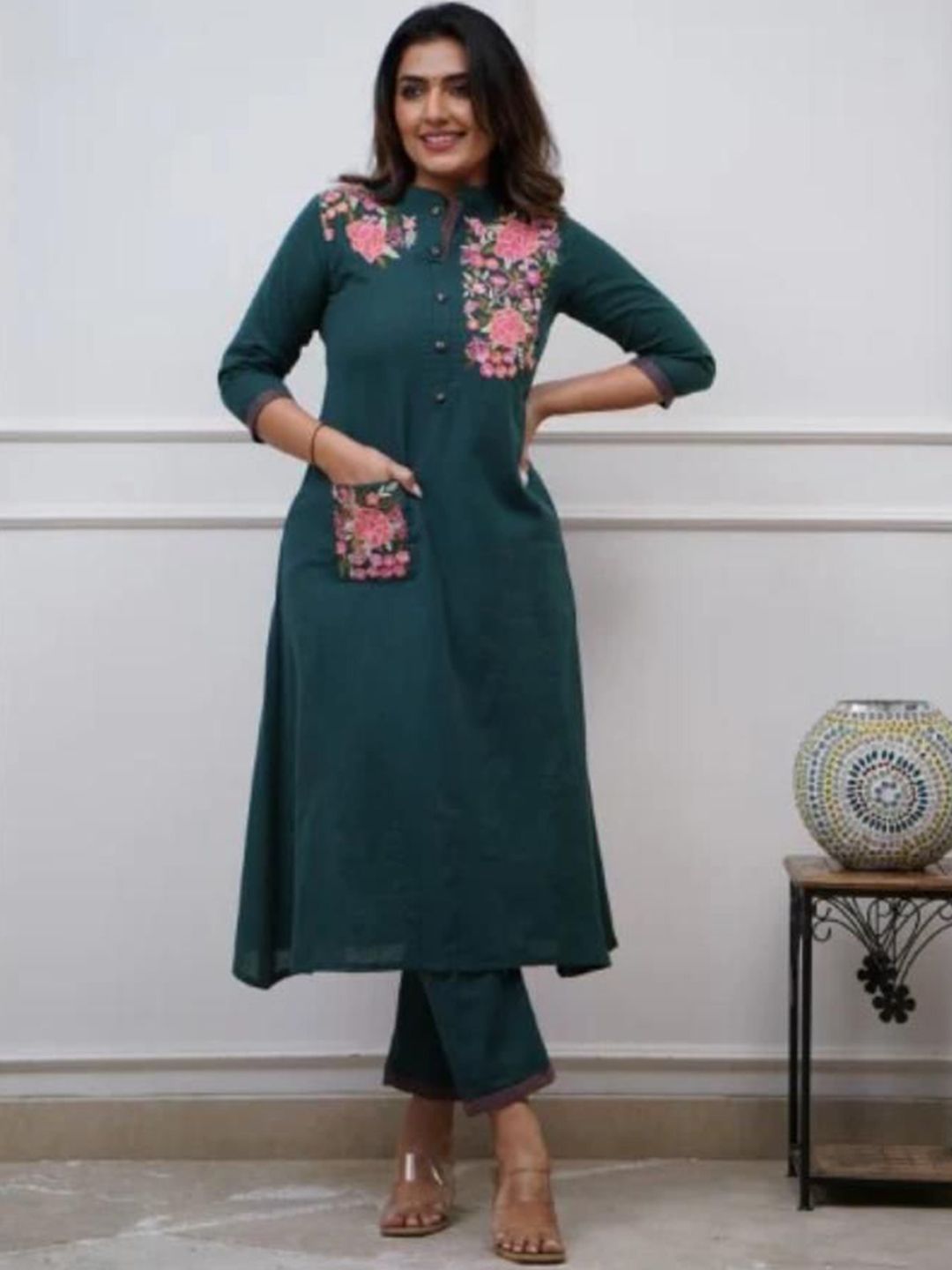Aaysa Kurti Floral Embroidered Mandarin Collar Pure Cotton Kurta With Trouser