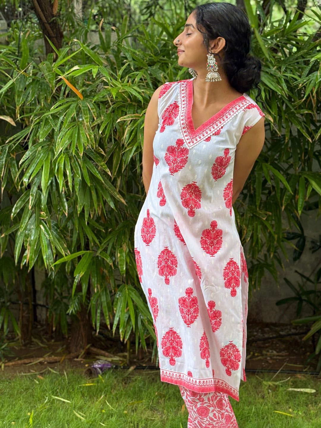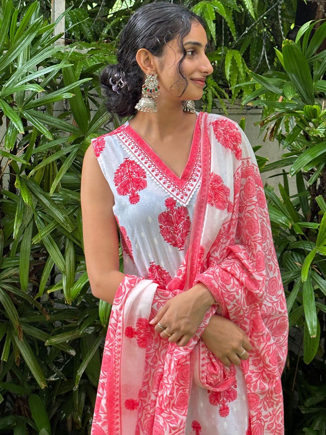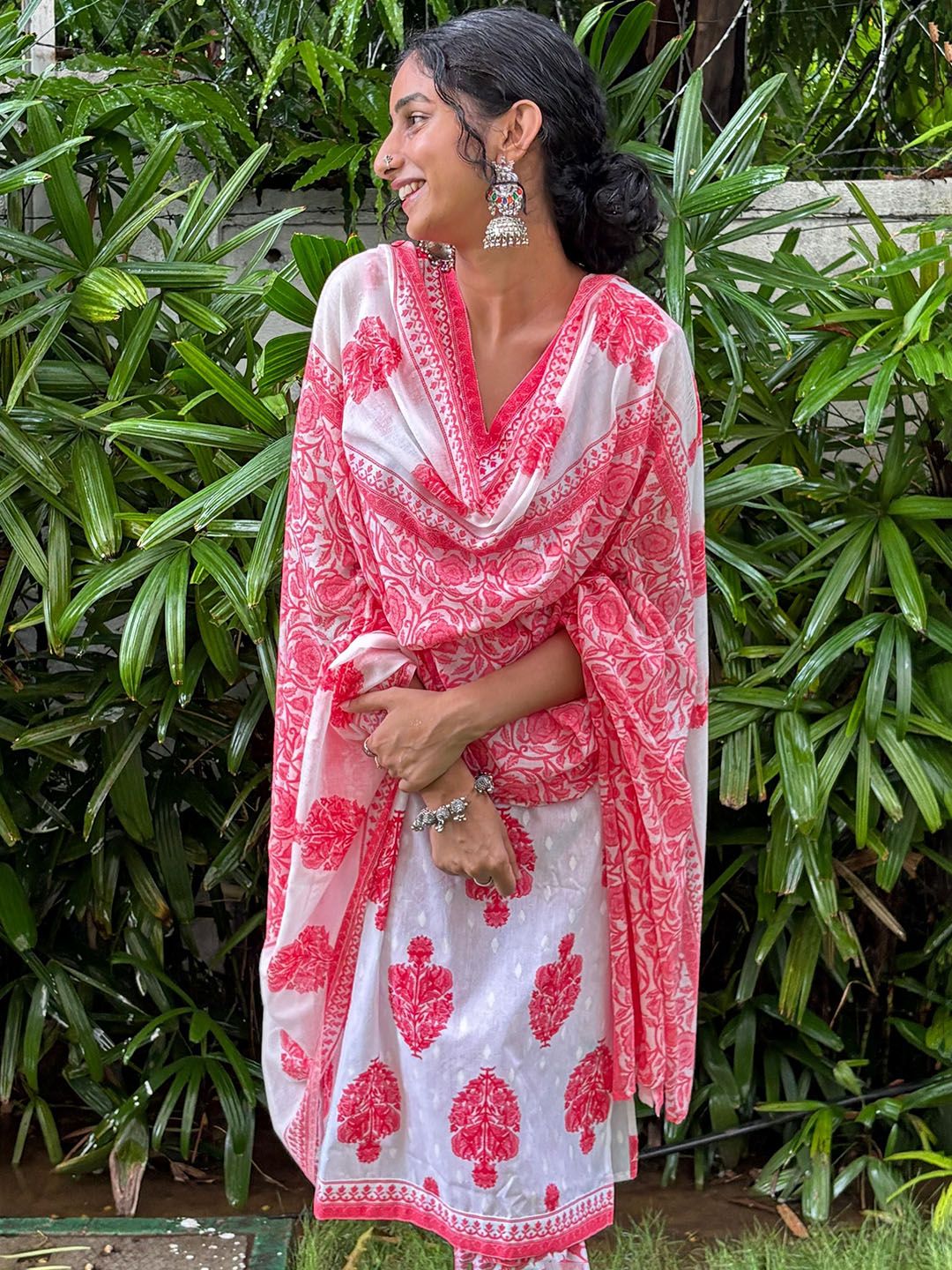 AAYUFAB Women Floral Printed Pure Cotton Kurta with Trousers & Dupatta