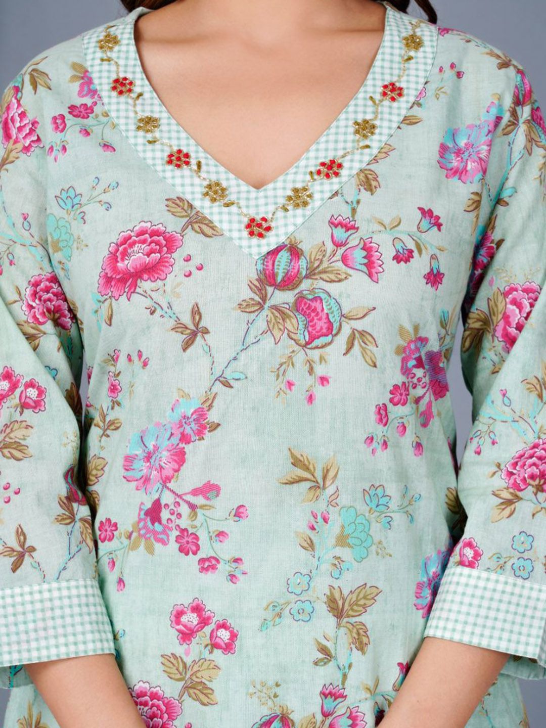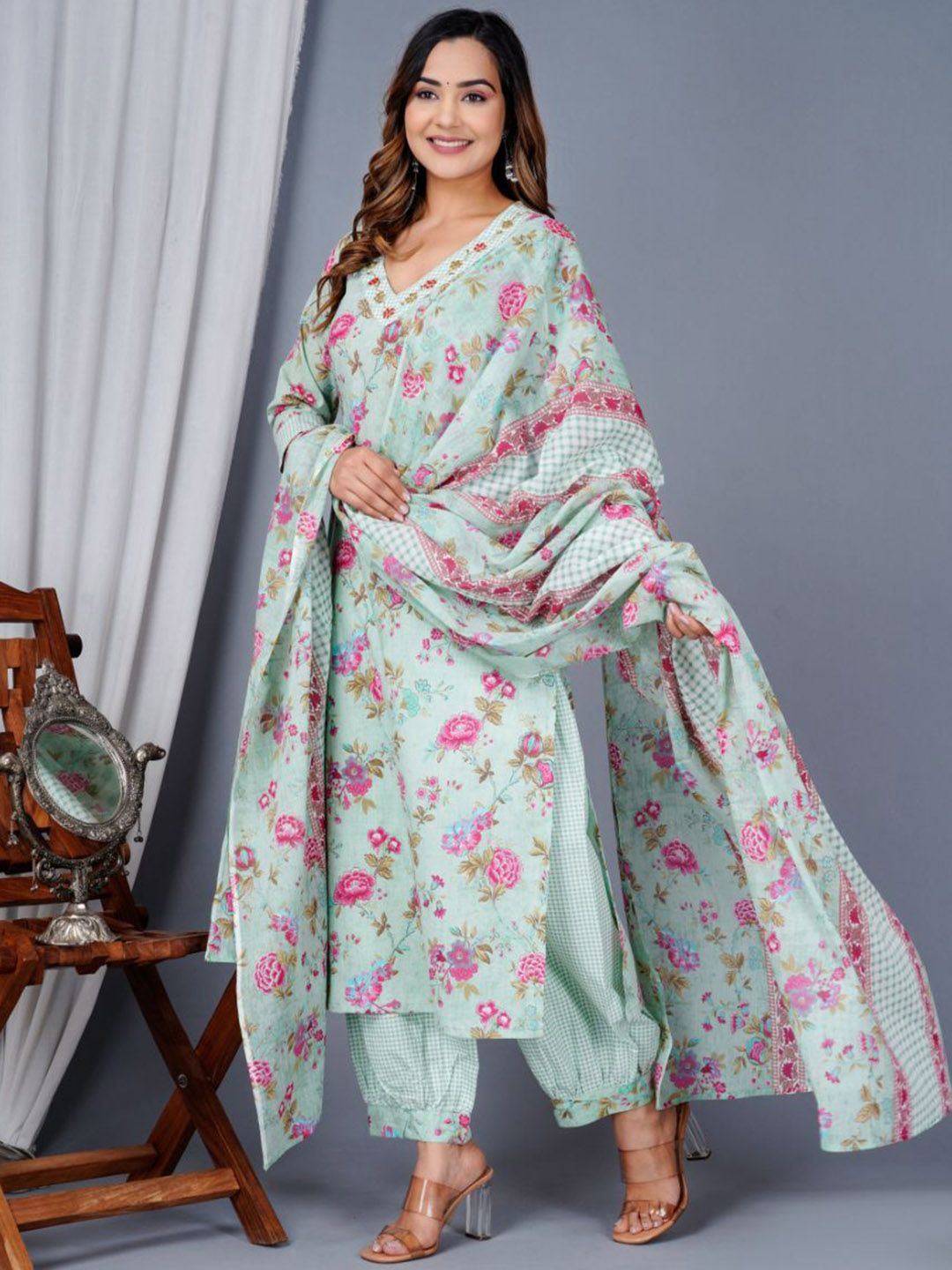 aayusika Women Floral Printed Cotton Kurta with Dhoti pant & Dupatta