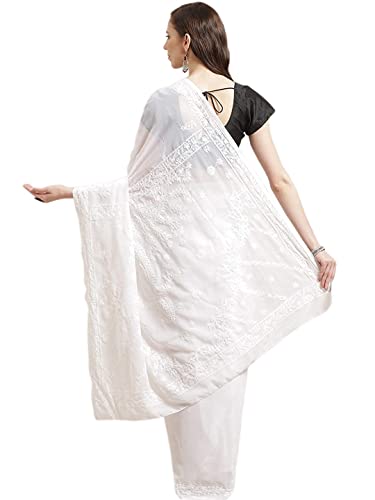 Ada Indian Hand Embroidered Georgette Lucknow Chikankari Saree with Unstitched Blouse Piece for Women - Saree_2290