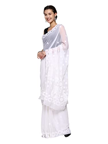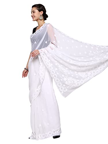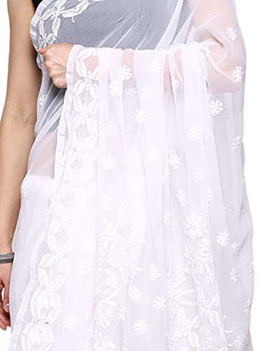 Ada Women's Hand Embroidered Lucknowi Chikankari Georgette Saree With Unstitched Blouse Piece A444222