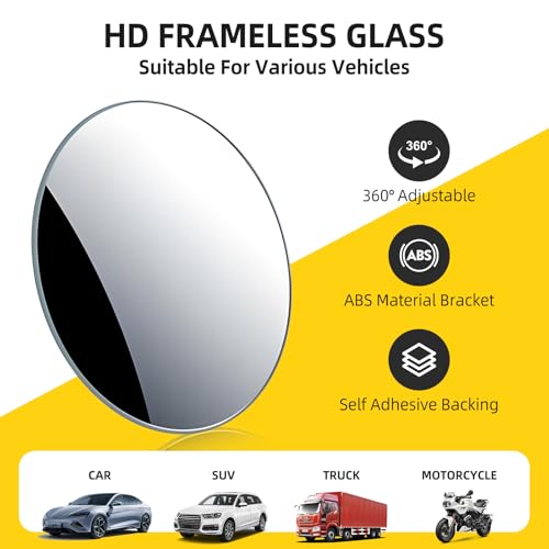 ???Drive with Confidence, Eliminate Blind Spots?Worried about blind spots causing accidents during driving? Aenfaiy blind spot mirrors are the perfect solution. Designed for starting, lane-changing, turning, reversing, and parking, they reduce collision risks significantly, a must-have for every driver. By reducing the risk of collisions, these mirrors ensure you and your loved ones stay safe on the roads, whether it's on the busy freeways of California or the narrow streets of New York. ???HD Glass, Frameless Wide-Angle?Crafted from high-quality 15D HD optical glass, our blind side mirrors offer a great clear view. The frameless design maximizes your field of vision, while the convex mirror shape provides a wide-angle view, eliminating those pesky blind spots. Whether you're driving a car, truck, or SUV, you can clearly observe vehicles and pedestrians in blind areas, ensuring a safe driving experience. ???Fully Adjustable for Your Comfort?The bracket is crafted from durable ABS material, features a unique ball design that enables 360° rotation. With just a gentle press on the edge of the mirror, you can easily adjust it to your desired angle. Tailor the view to your driving habits and vehicle conditions for the best - possible visibility. ???Universal Compatibility? With a 2-inch diameter, Aenfaiy round convex blindspot mirrors strike the perfect balance between providing sufficient view and not obstructing the original rearview mirror. They are an excellent addition to side rear view mirrors and are highly compatible with common vehicles like cars, trucks, SUVs, off - road vehicles, and motorcycles. ???Quick and Easy Installation?Installing our blind spot mirrors is a breeze. With strong self-adhesive on the back, they can be firmly fixed to your vehicle's rear-view mirror. Just clean the rear-view mirror, peel off the adhesive film, stick it on, and adjust the angle. No tools required, and you can enhance your driving safety in minutes.