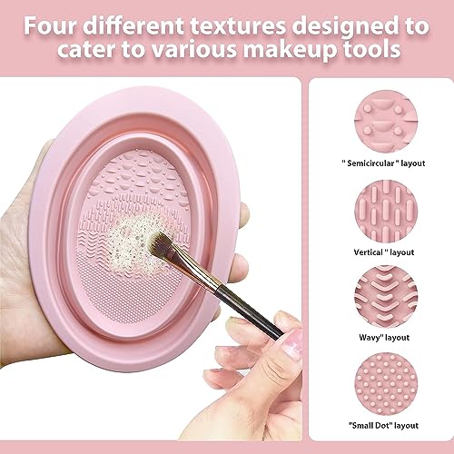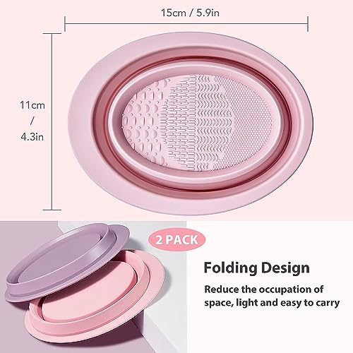 Agudo 2 pcs makeup brush cleaning washing mat pad scrubber tool for women girls,folding silicone paint brush cleaner mat with 4 textures for painter artist(multicolour/small)