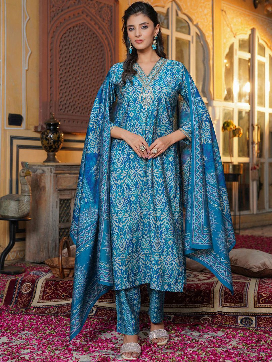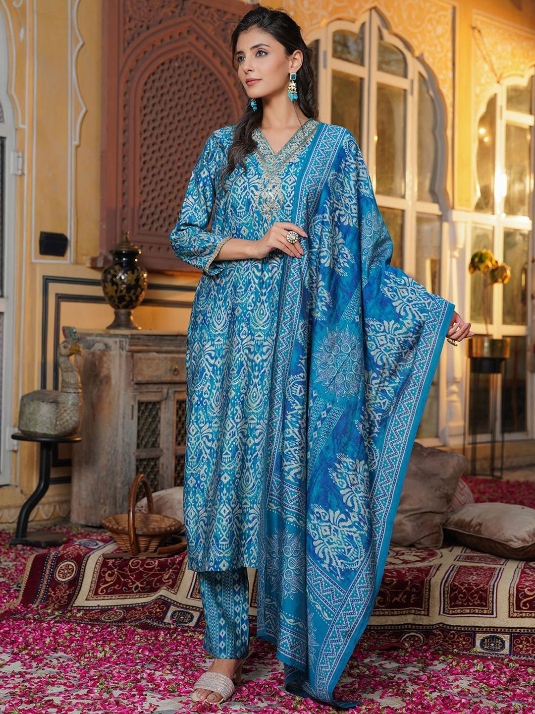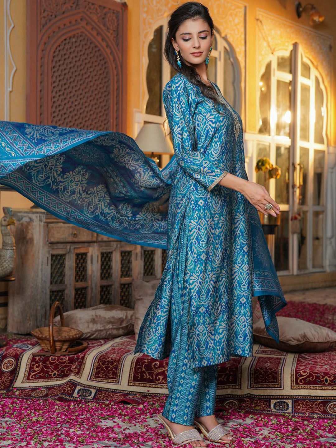 AHIKA Women Ethnic Motifs Printed Kurta with Trouser & Dupatta