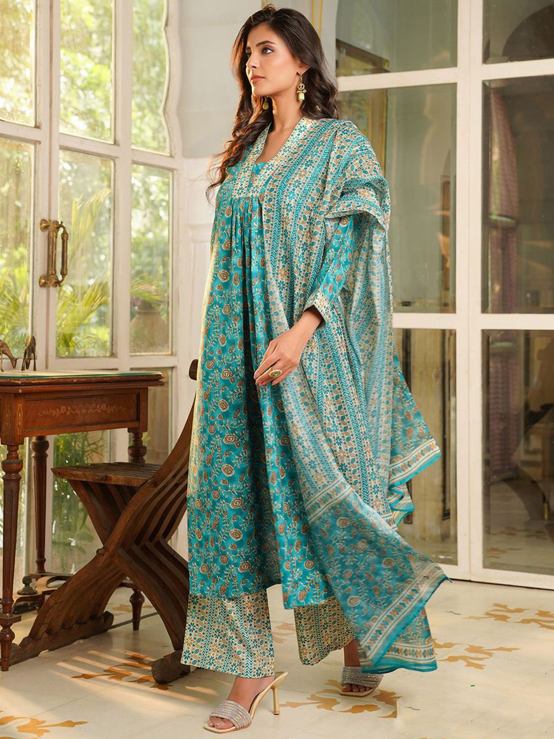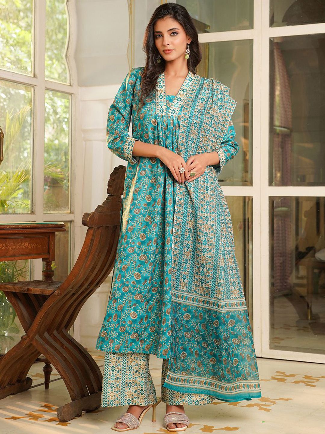 AHIKA Women Floral Printed A-Line Kurta with Palazzo & Dupatta