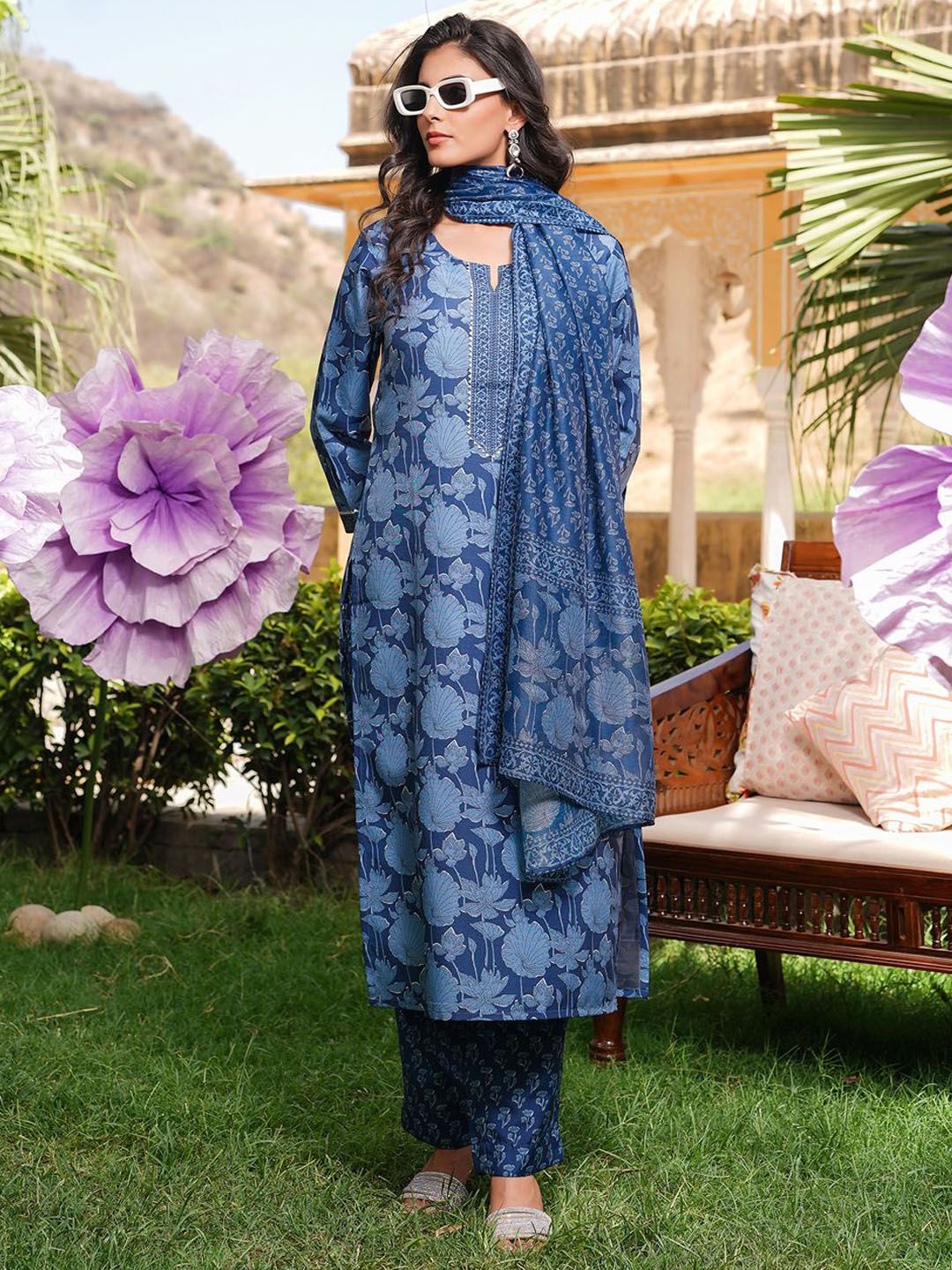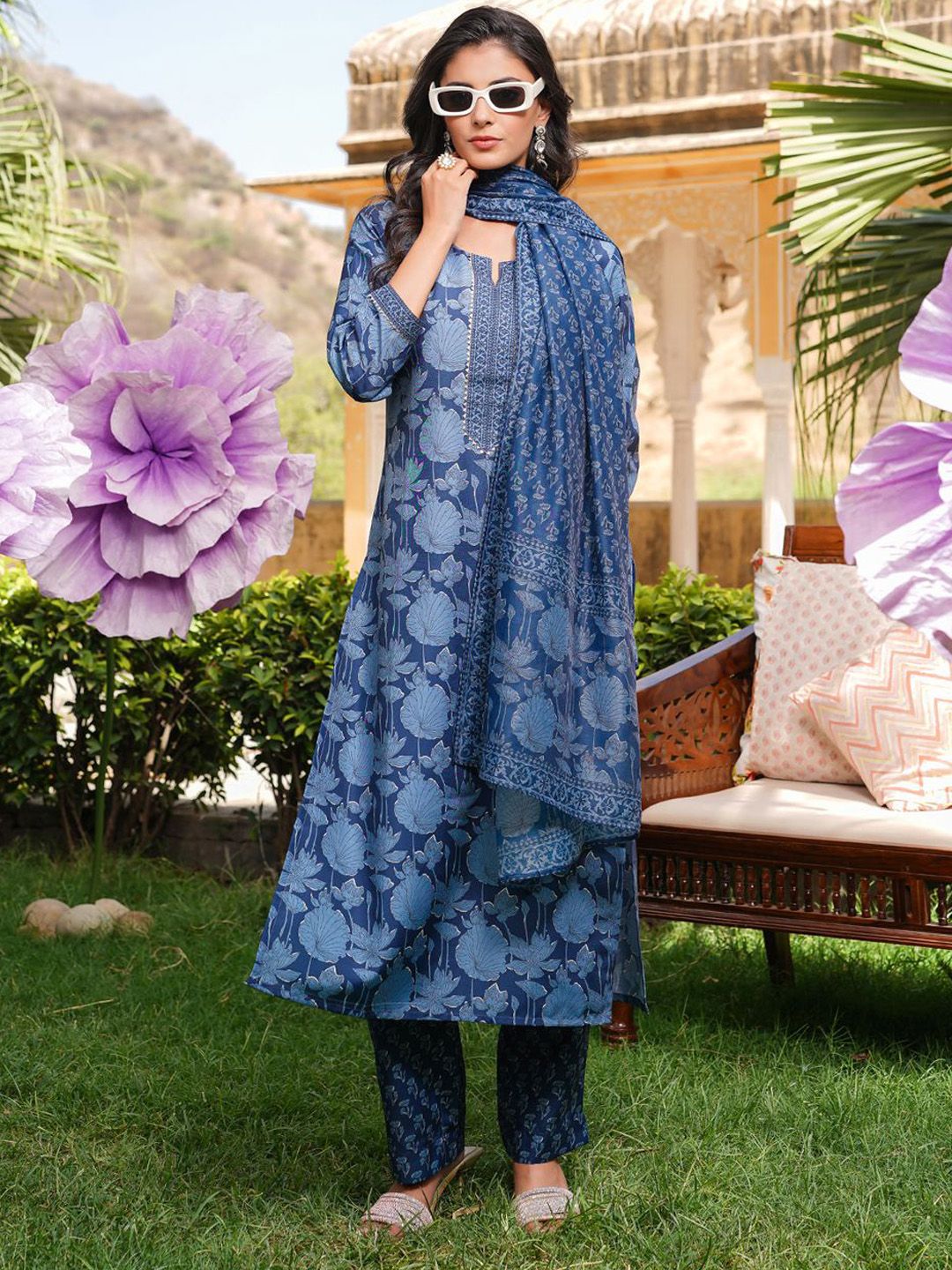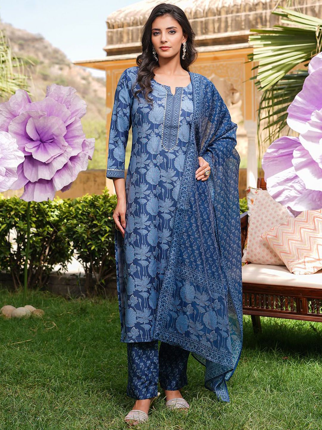 AHIKA Women Floral Printed Kurta with Trouser & Dupatta
