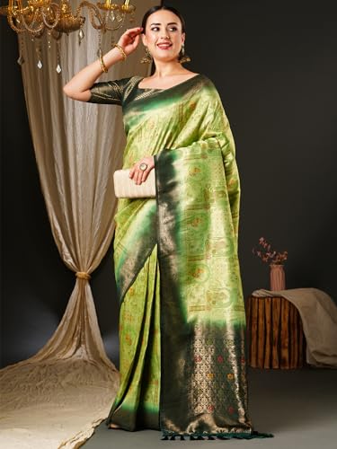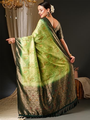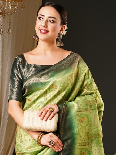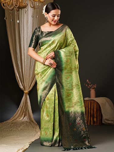 AKHILAM Akhliam Women's Kanjeevaram Silk Paisley Woven Design Saree With Unstitched Blouse Piece