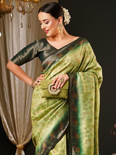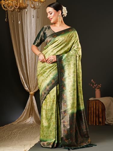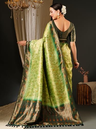 AKHILAM Akhliam Women's Kanjeevaram Silk Paisley Woven Design Saree With Unstitched Blouse Piece
