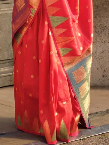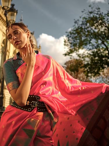 AKHILAM Women's Banarasi silk Ethnic Motif Saree With Unstitched Blouse Piece(Pink_KHWAB349001_RJ)