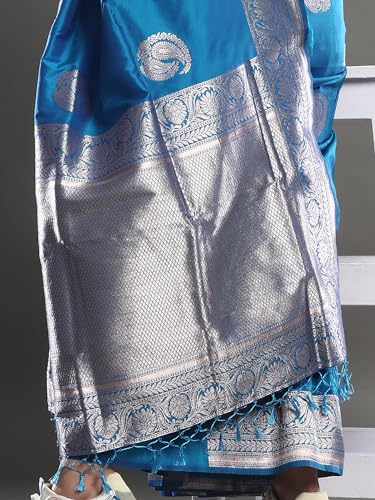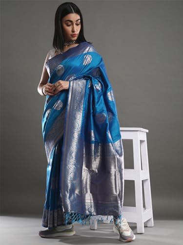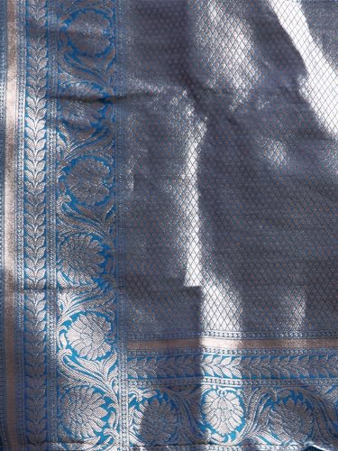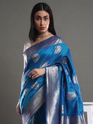 AKHILAM Women's Banarasi silk Floral Saree With Unstitched Blouse Piece(Blue_3PAKHI5104D_SNK)