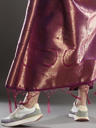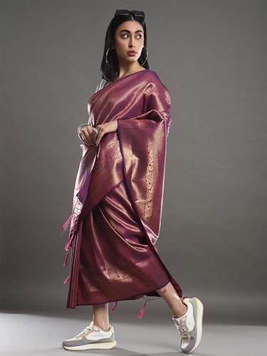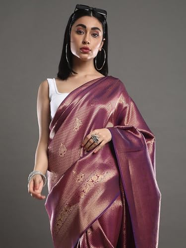 AKHILAM Women's Banarasi silk Woven Design Saree With Unstitched Blouse Piece(Purple_KUNT188001_SNK)