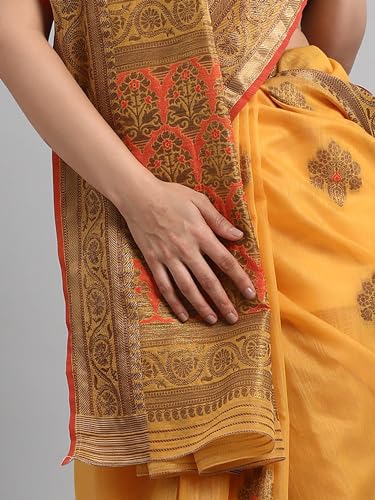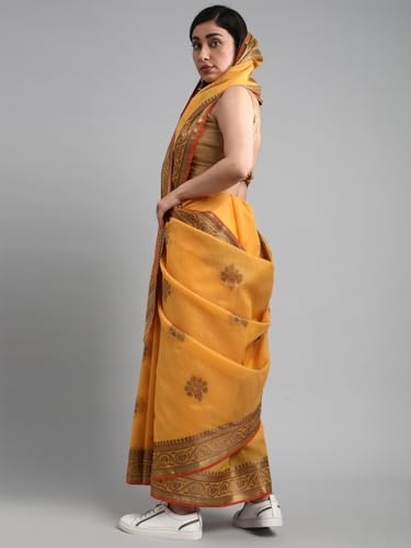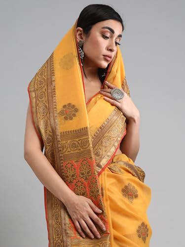 AKHILAM Women's Banarasi silk Woven Design Saree With Unstitched Blouse Piece(Yellow_MEIRA1001_SNK)