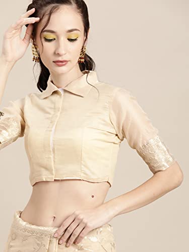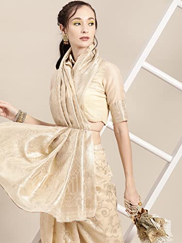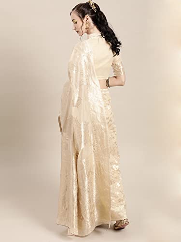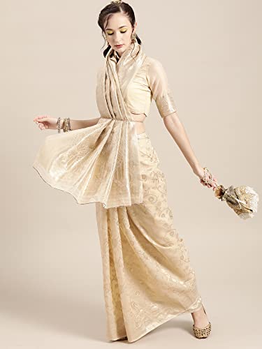 AKHILAM Women's Banarasi Silk Woven Saree With Unstitched Blouse Piece (Cream_FF0KLIKS61005)