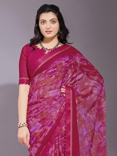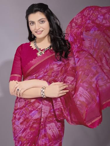 AKHILAM Women's Chiffon Abstract Printed Saree With Unstitched Blouse(SAVERA32601A_TFH_Parent)
