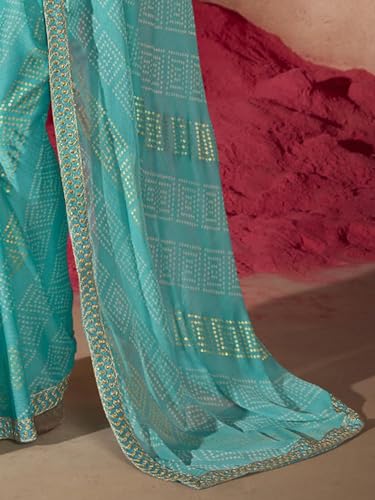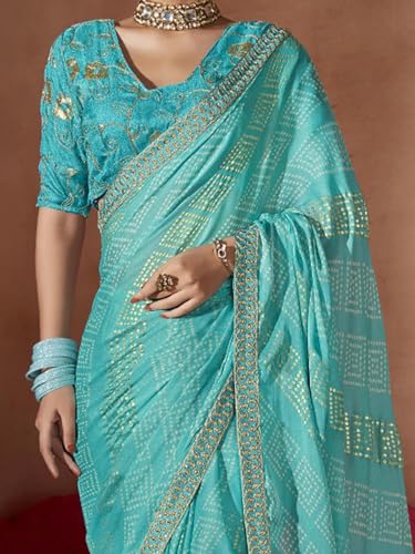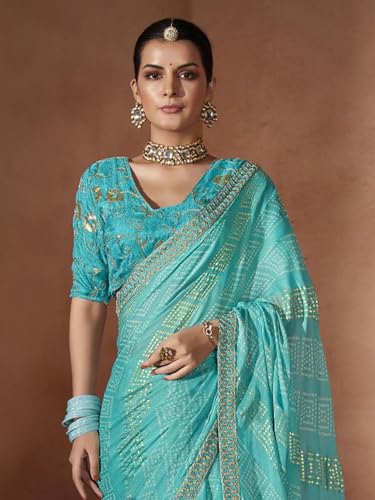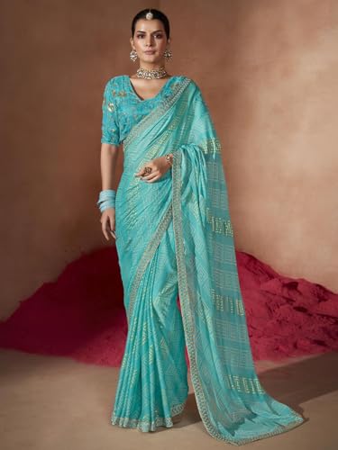 AKHILAM Women's Chiffon Woven Design Saree With Unstitched Blouse Piece (Blue_SANVI1009_SS.)
