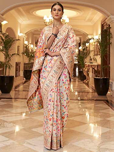 AKHILAM Women's Cotton Silk Botanical Woven Design Saree With Unstitched Blouse Piece