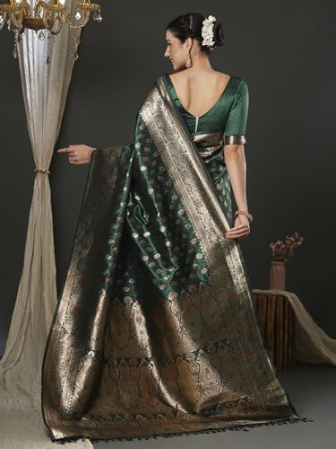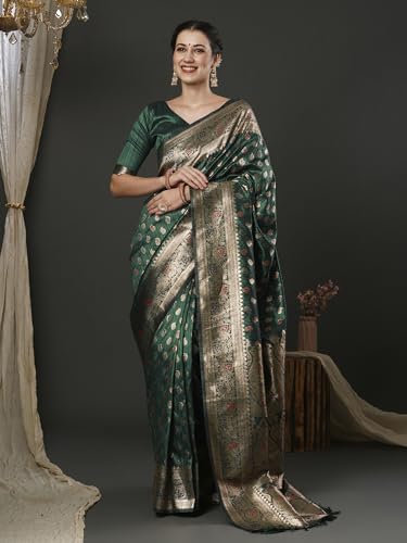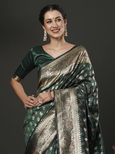 AKHILAM Women's Cotton Silk Ethnic Motif Saree With Unstitched Blouse Piece(MILNO3001_Parent)