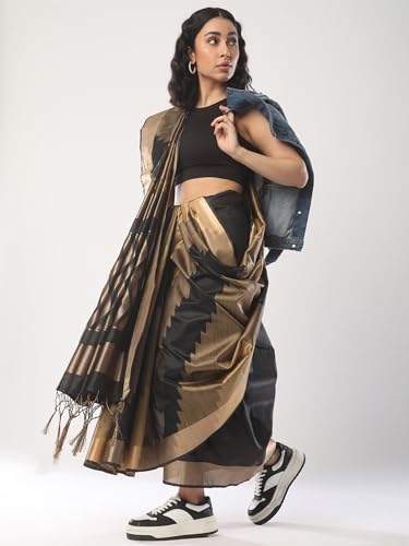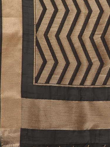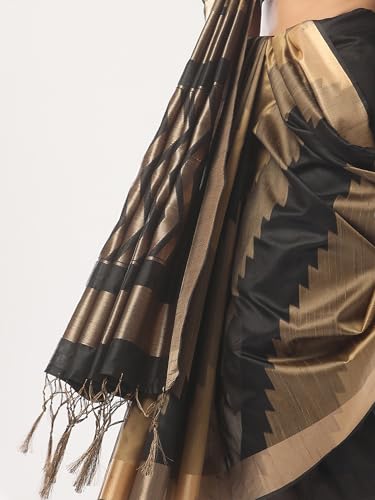 AKHILAM Women's Cotton Silk Geometric Woven Design Saree With Unstitched Blouse Piece(Black_HNDS746B_SNK)