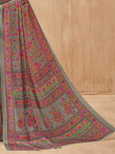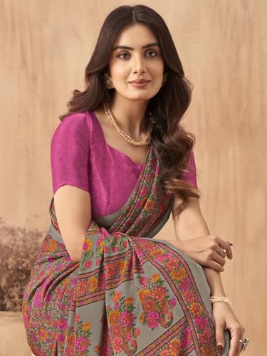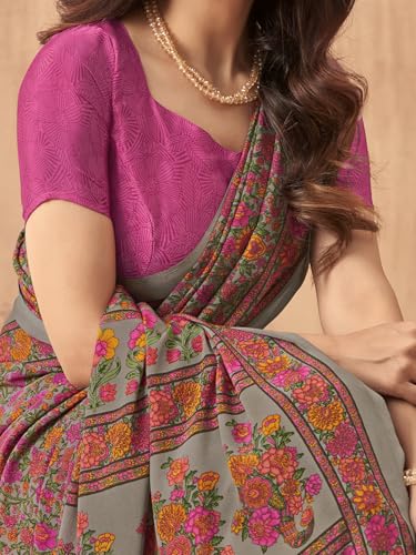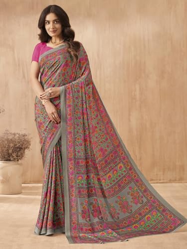 AKHILAM Women's Crepe Botanical Printed Saree With Unstitched Blouse (VIVNTA34101A_TFH_Parent)