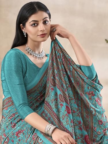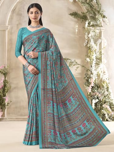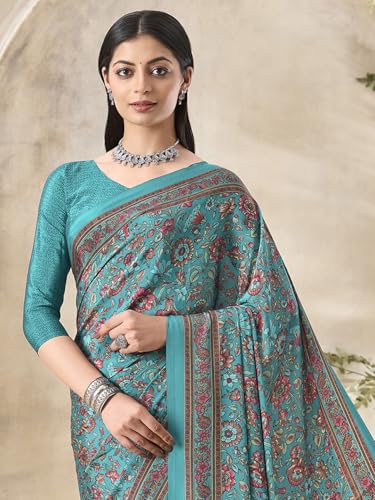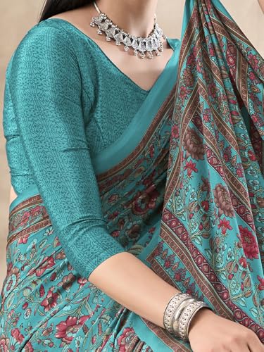 AKHILAM Women's Crepe Botanical Printed Saree With Unstitched Blouse (VIVNTA34203A_TFH_Parent)