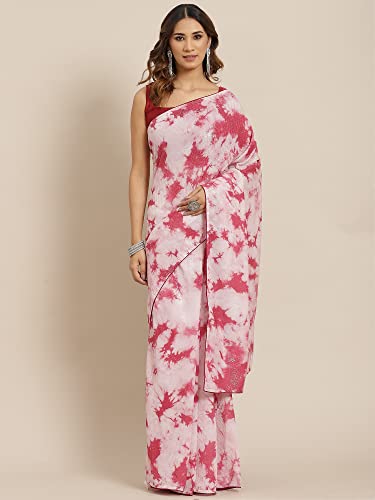 AKHILAM Women's Embellished Tie and Dye Polyester Saree With Unstitched Blouse Piece(GLMP20_Parent)