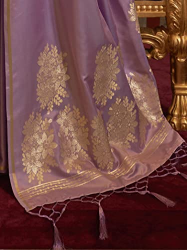 AKHILAM Women's Floral Woven Design Banarasi Pure Silk Sarees For Women With Unstitched Blouse Piece (KSBLE2240_Parent)