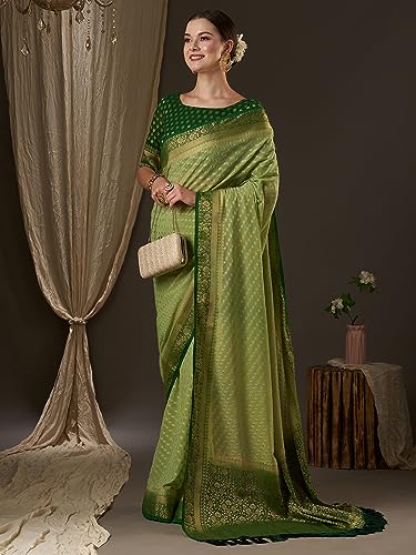 AKHILAM Women's Georgette Banarasi Silk Saree with Unstitched Blouse Piece