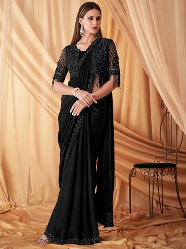 AKHILAM Women's Georgette Embellished Saree With Unstitched Blouse Piece