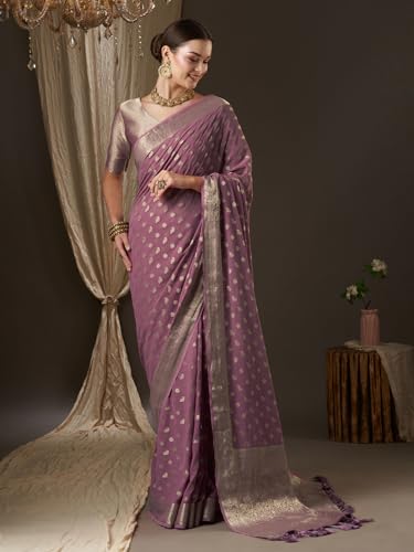 AKHILAM Women's Georgette Geometric Printed Saree With Unstitched Blouse
