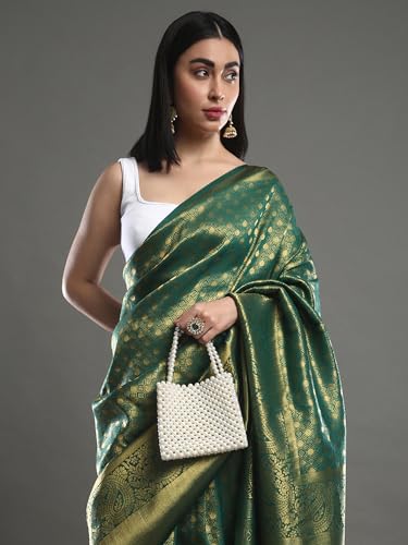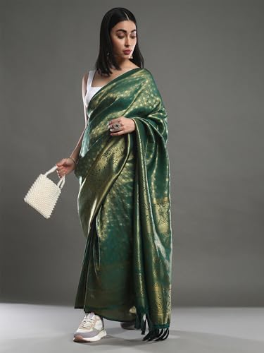 AKHILAM Women's Georgette Woven Design Saree With Unstitched Blouse Piece(Green_5ALEKHA5003_SNK)