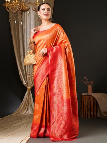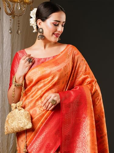 AKHILAM Women's Kanjeevaram Silk Paisley Woven Design Saree With Unstitched Blouse Piece
