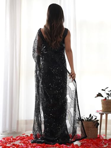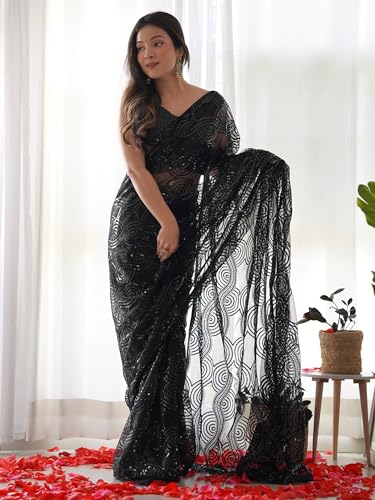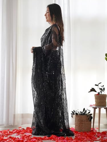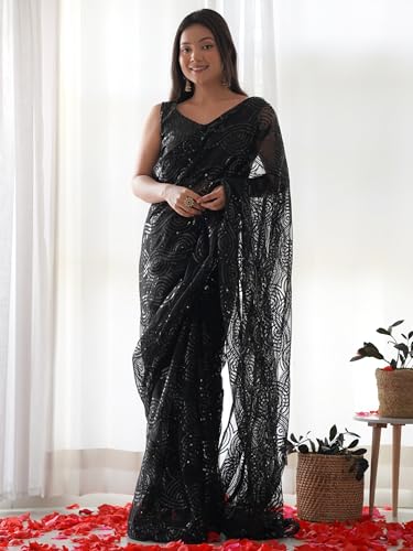 AKHILAM Women's Manipuri Silk Embellished Saree With Unstitched Blouse Piece