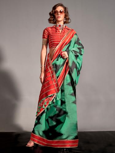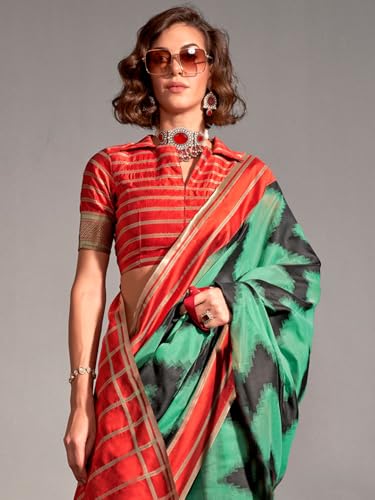 AKHILAM Women's Multicolor Silk Blend Geometric Printed Saree With Unstitched Blouse Piece (KHIMSAR367001_RJ_Parent)